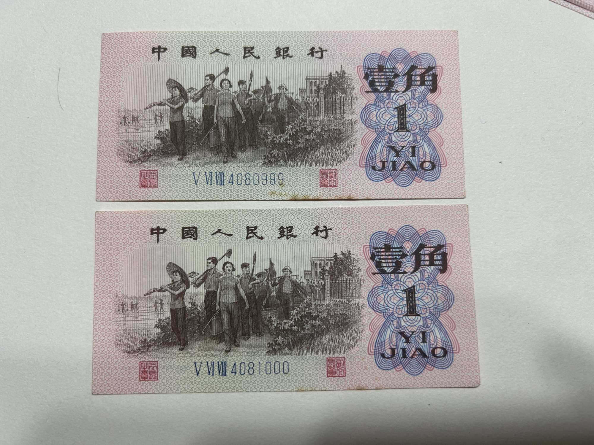 三版豹子号4张,原票无折,大团结888豹子号550元,一角两角三张150元。