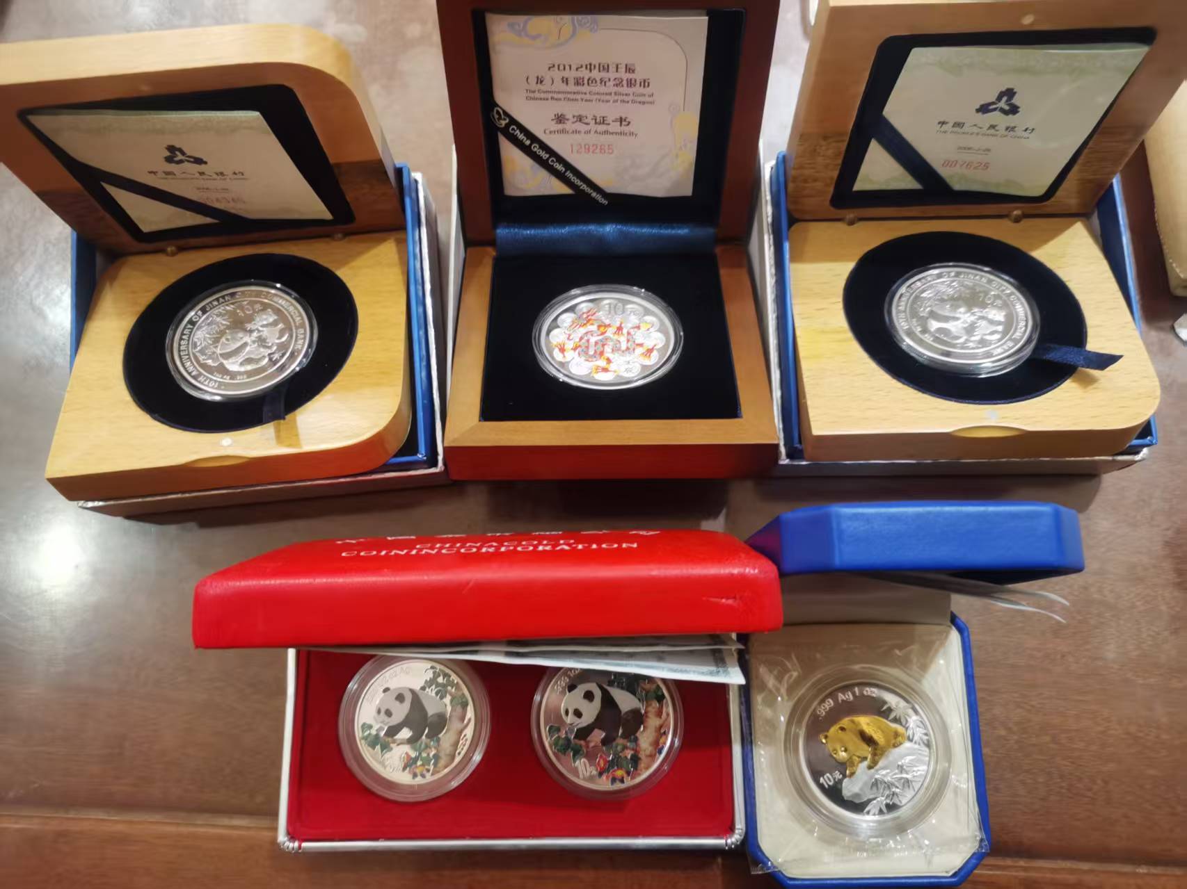 出98年1+1/2盎司彩银猫,99钱博会加字猫,12彩银龙,06济南商业银行十周年加字猫
