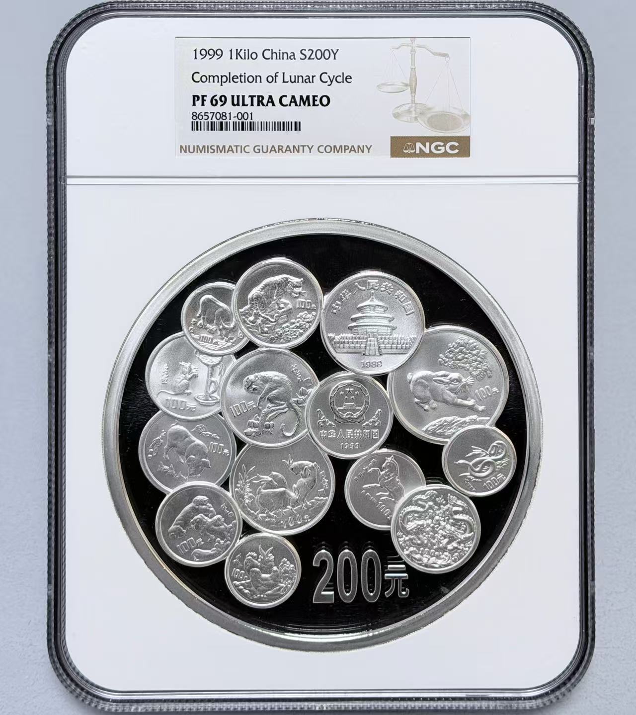 出售NGC69分【1999年二轮生肖转盘公斤银币】,配盒证!证书好号!不议价:56000元,确认有效!!!