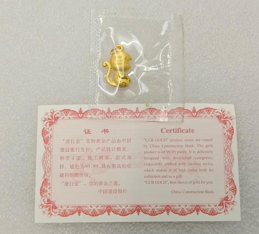 ██建行3克猴年生肖金挂件1个██