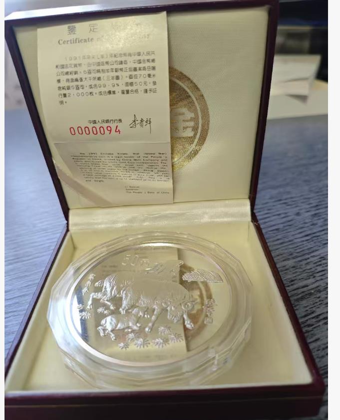出售1991年5盎司羊银币,发行量2000枚,稀缺,证盒全=6100元。