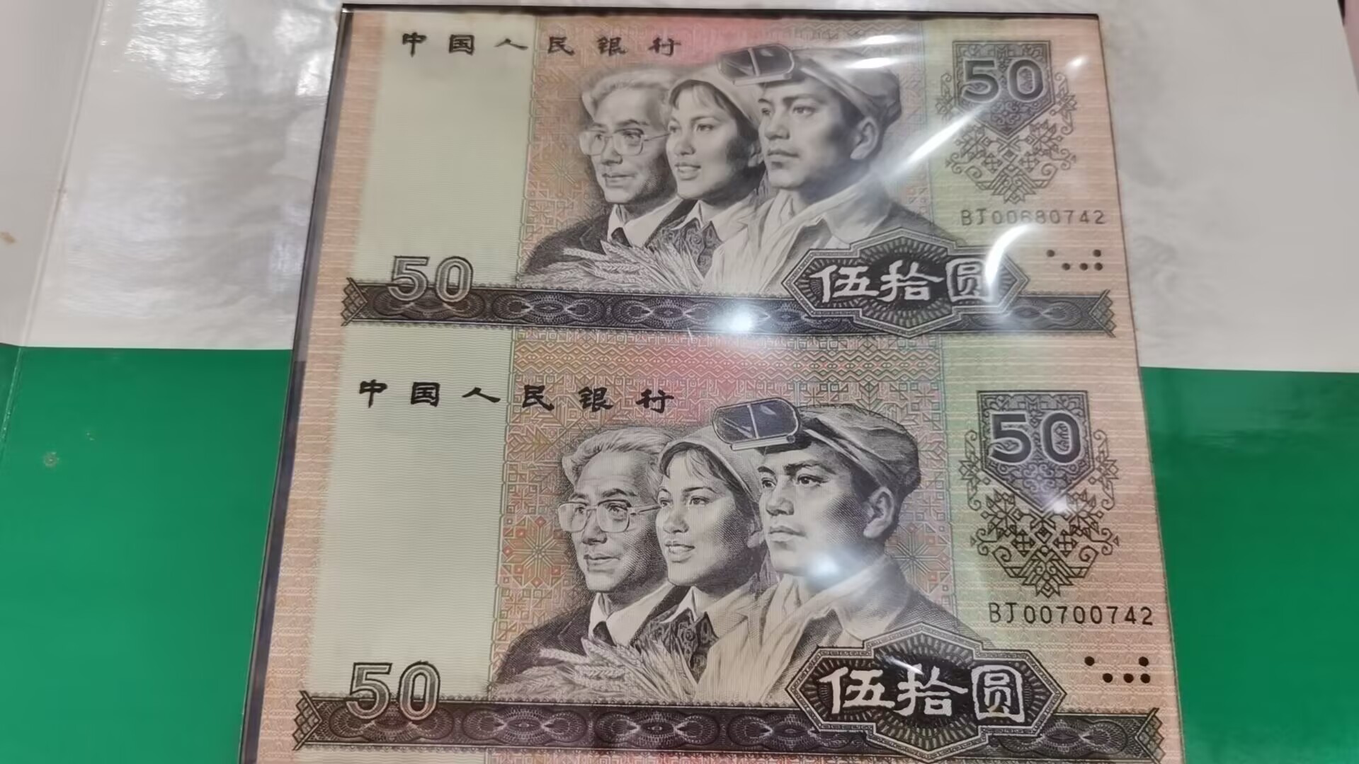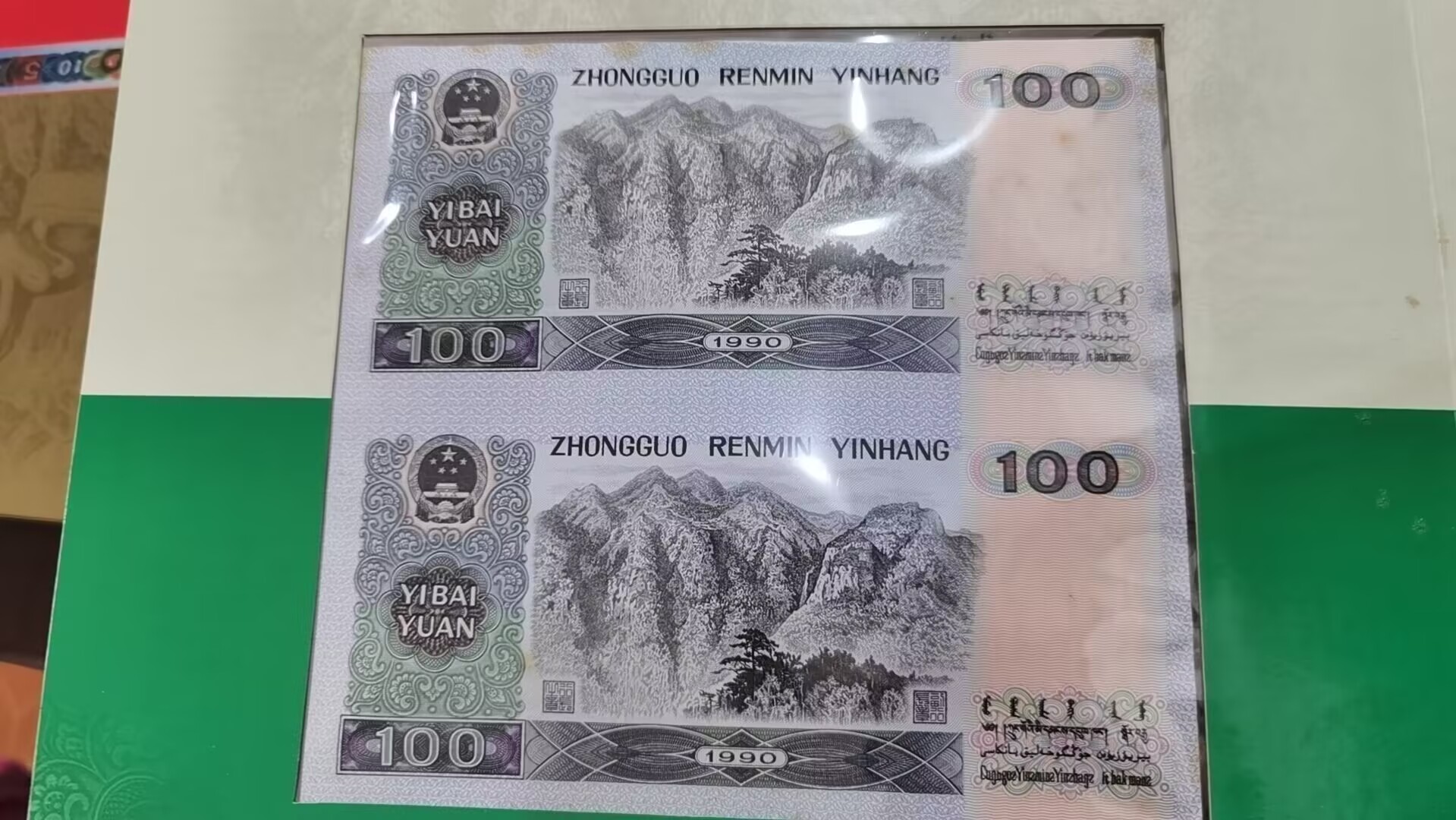 十元 五十 和 一百元 面值 两连体各一张全同号。有黄斑, 2500元。