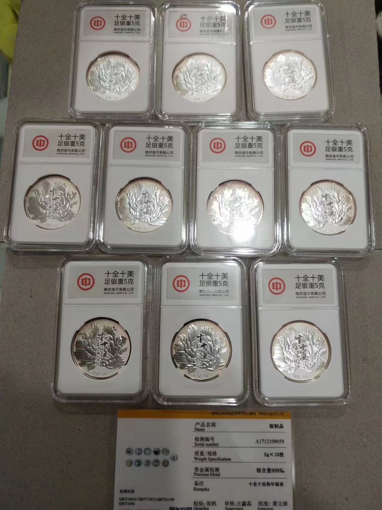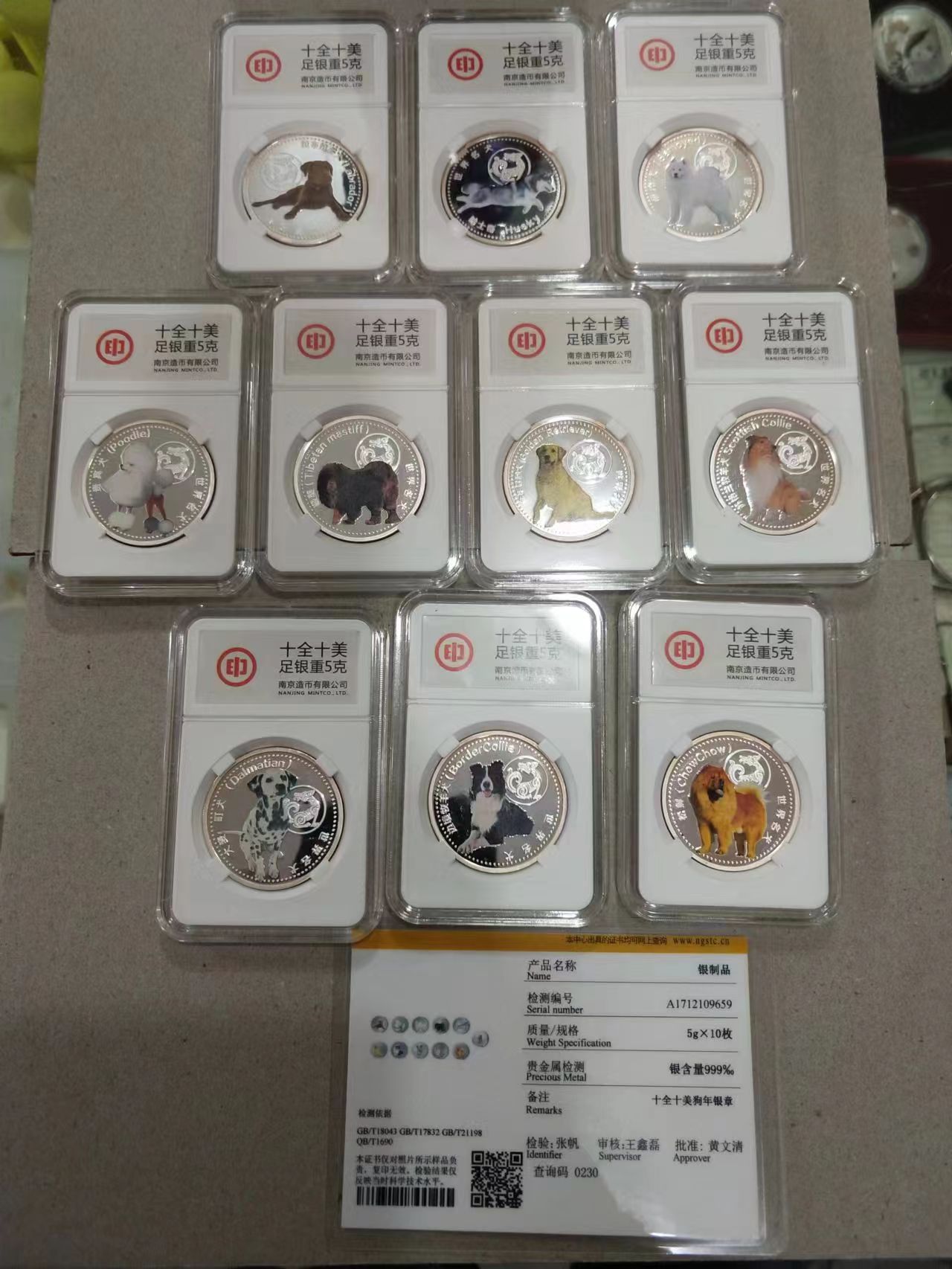 十全十美狗年银章,一套10枚,每枚5克。一套1100