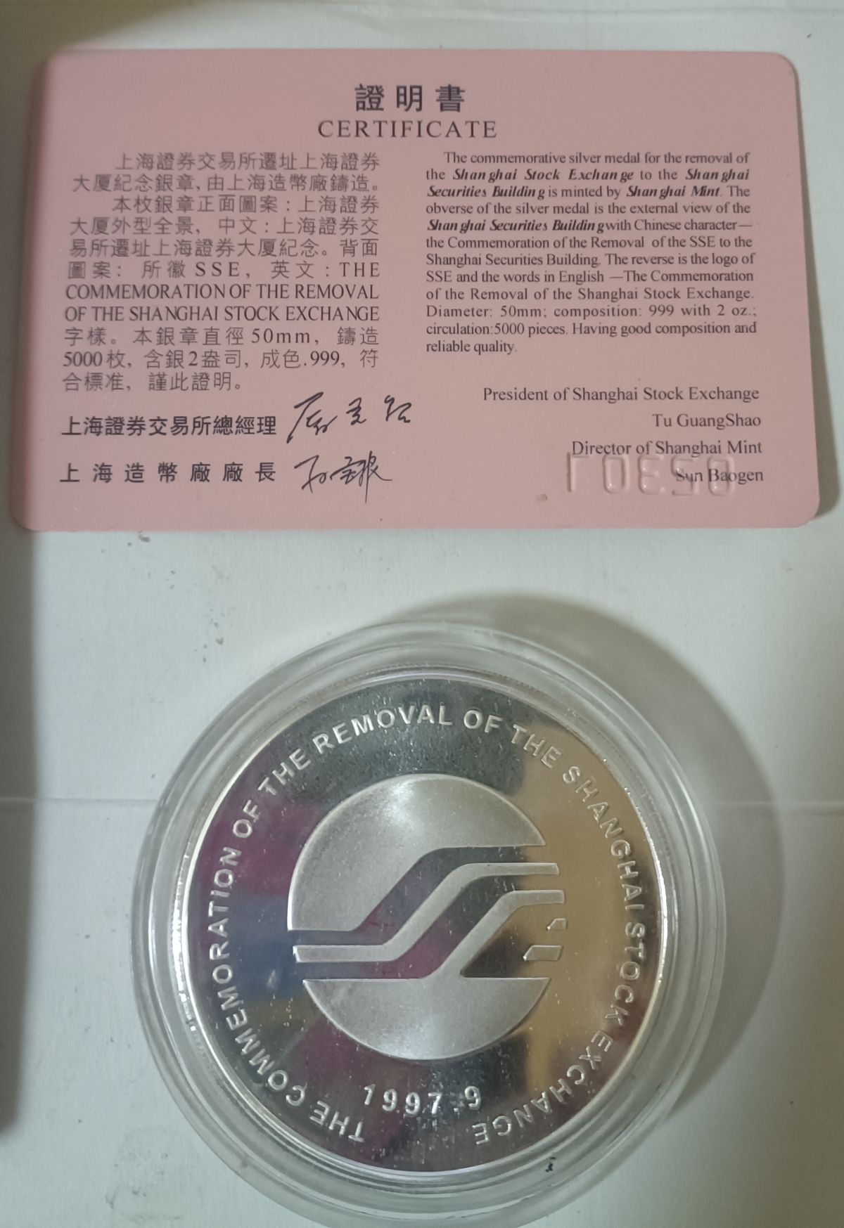 出2盎司上海证券交易所银章一个!