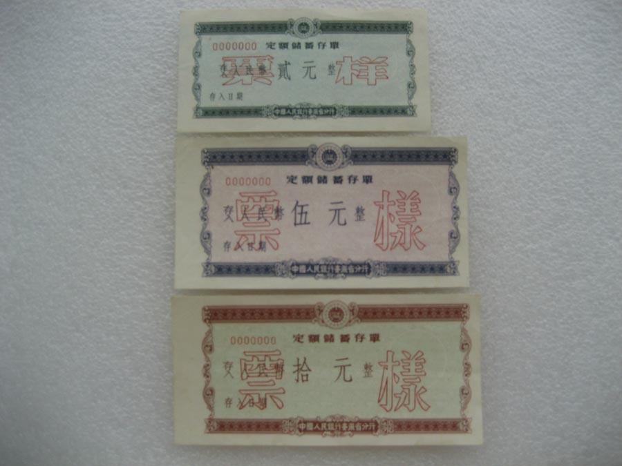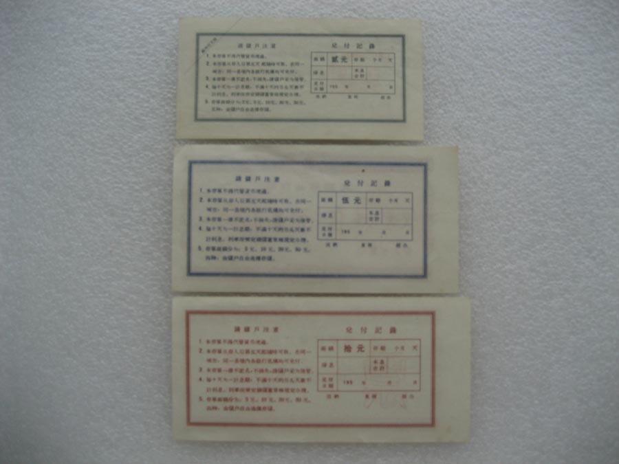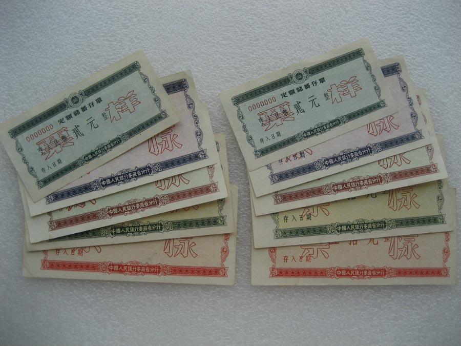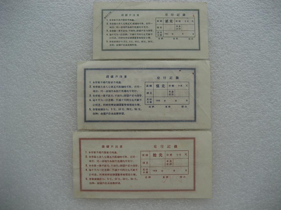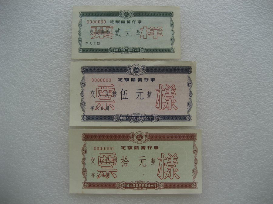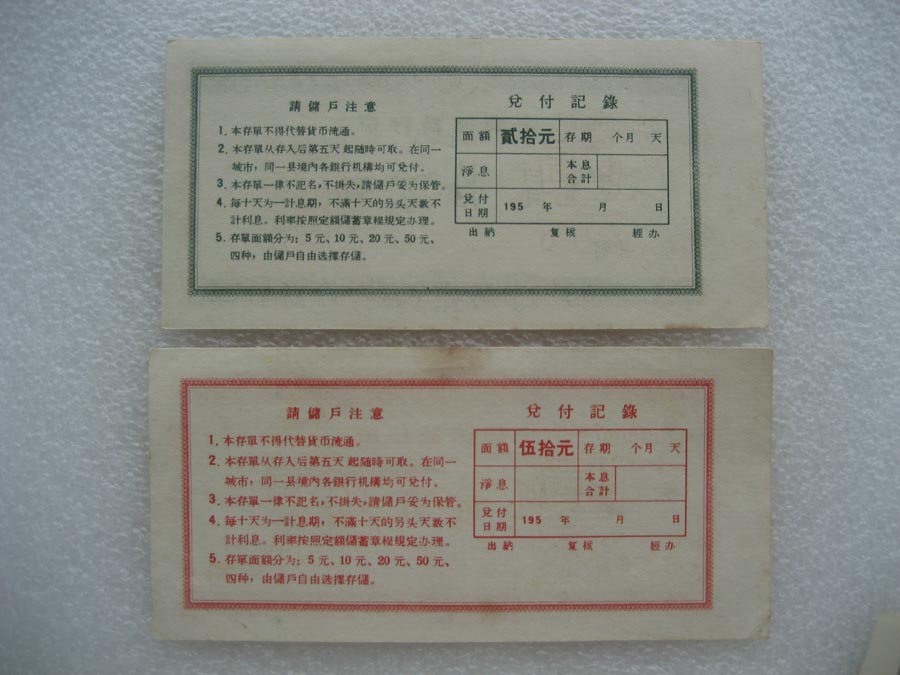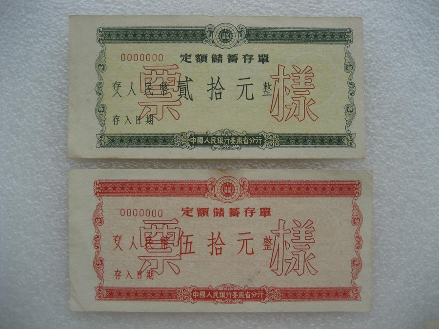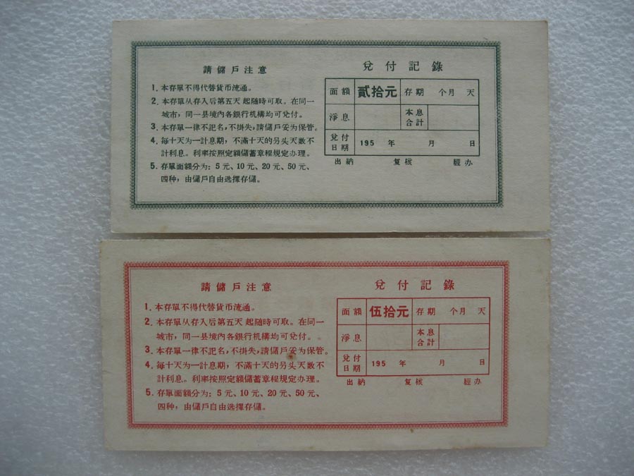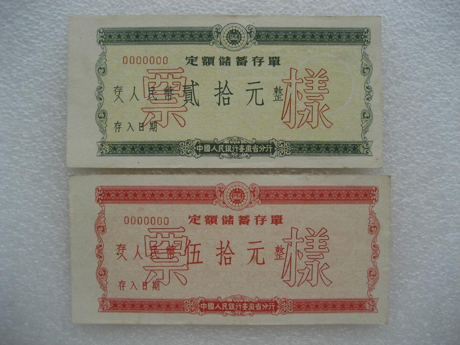 1950年代中国人民银行安徽省分行定期储蓄存单票样 两套