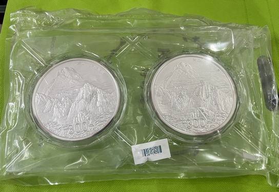 2013年黄山公斤银币原封两枚,品相好,边缘正常氧化,盒证齐全,证书号无4:1525,1527!