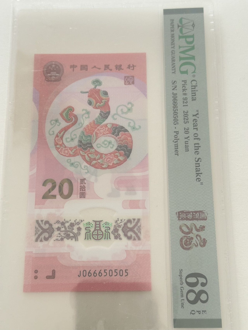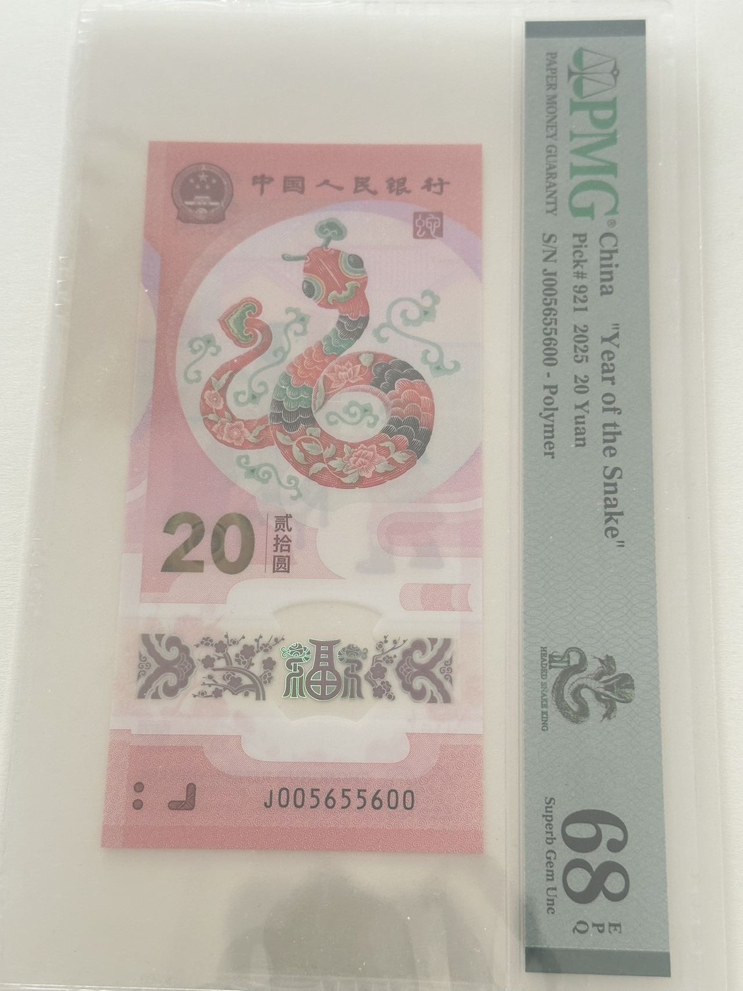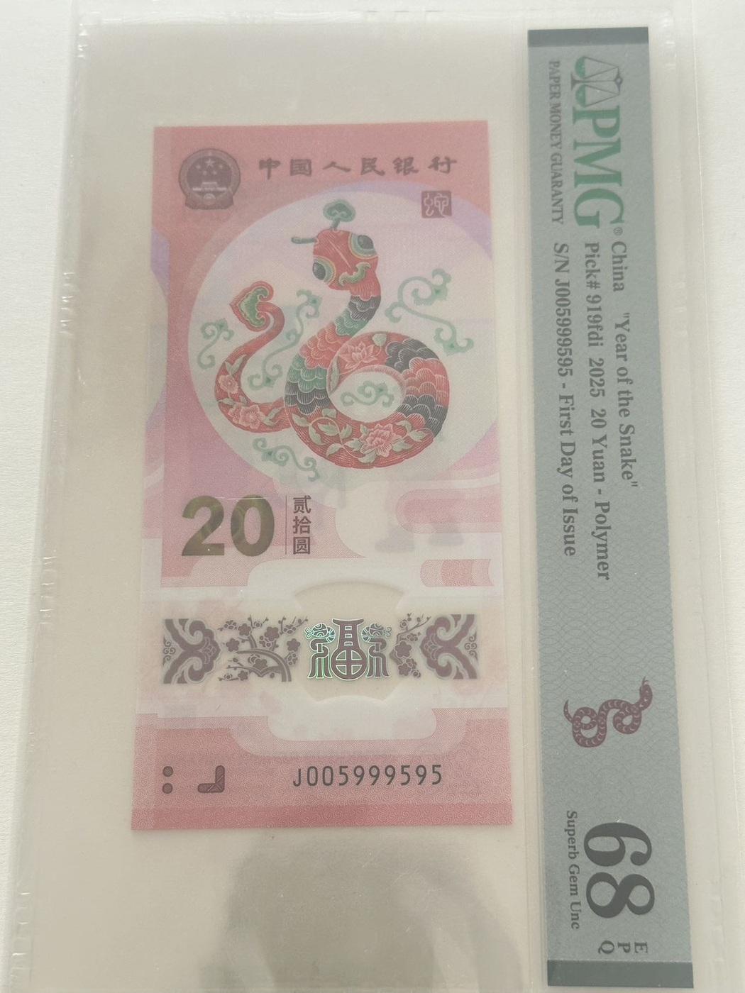 蛇钞059,灵珠号,005999595。前面00。尾双95至尊。919首日标。5500。