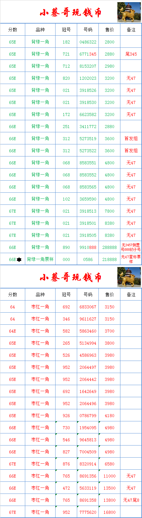 备注:本店主营PMG评级纸币,另外长期高价回收各种版别的PMG评级币。重点回收二版币:黑一元,红一元,宝塔山,黄五元,海鸥五元,红五元,绿三元,大黑拾等,三版:五星车工,古币车工,背绿,枣红,背水等,四版币,不限数量!不限分数!只要您有货,咱们都可以谈,1张不嫌少,1000张不嫌多。