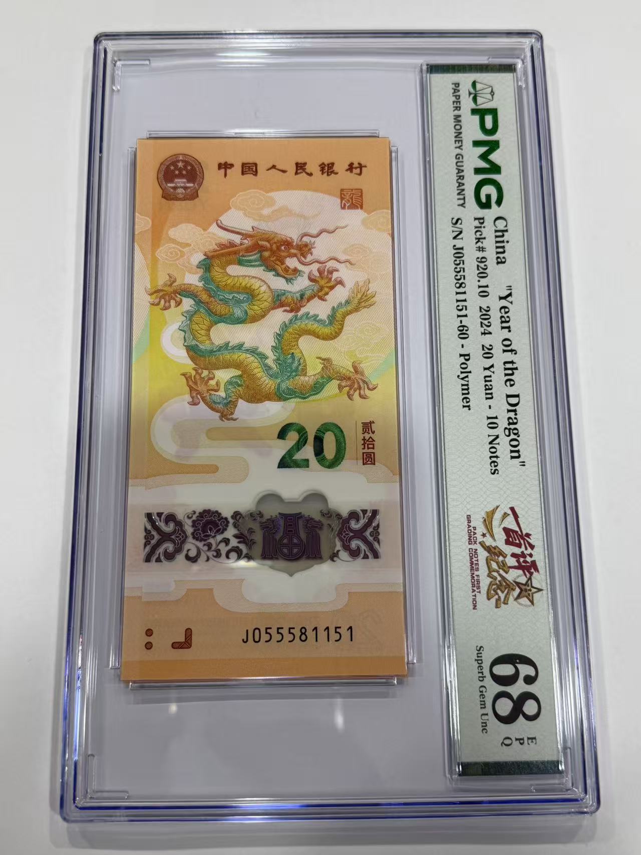 小龙钞0158标十满号555头pmg68
