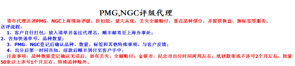 长期高价回收一版、二版、三版、四版PMG评级币,PMG,NGC评级代理!