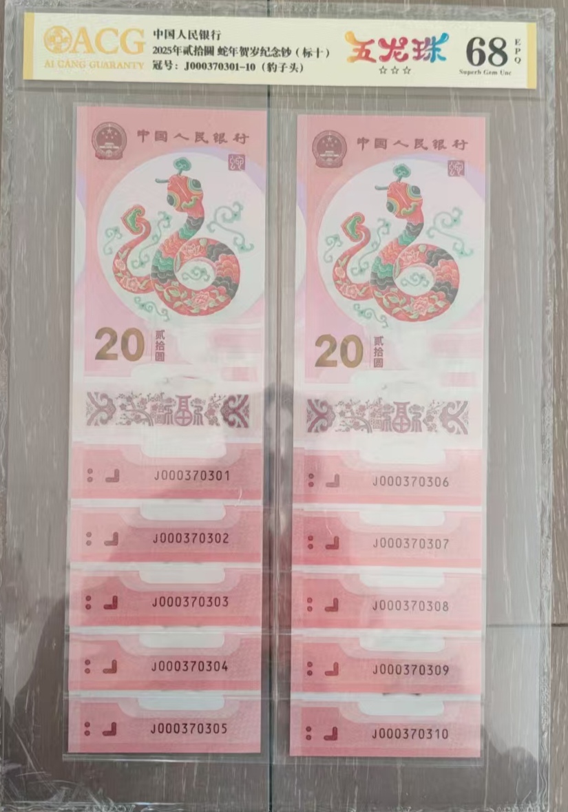 出蛇钞小司令双豹子037蛇三标十,爱藏老标严评高分68分,张张五龙珠,尾生日号。1688元惠出