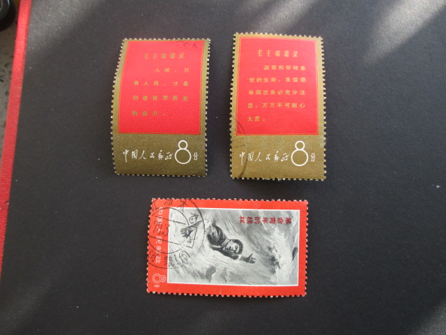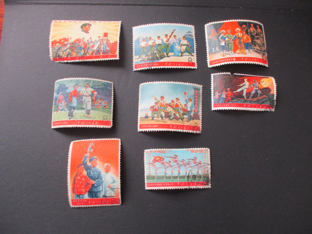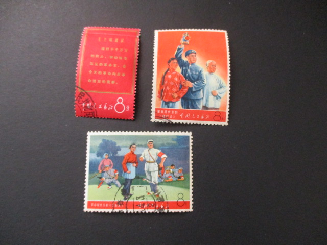 三。组织:上有折,漏白。海关戳60元。红灯记:左中小裂口,小戳50元。沙家浜:右下两齿弱40元。