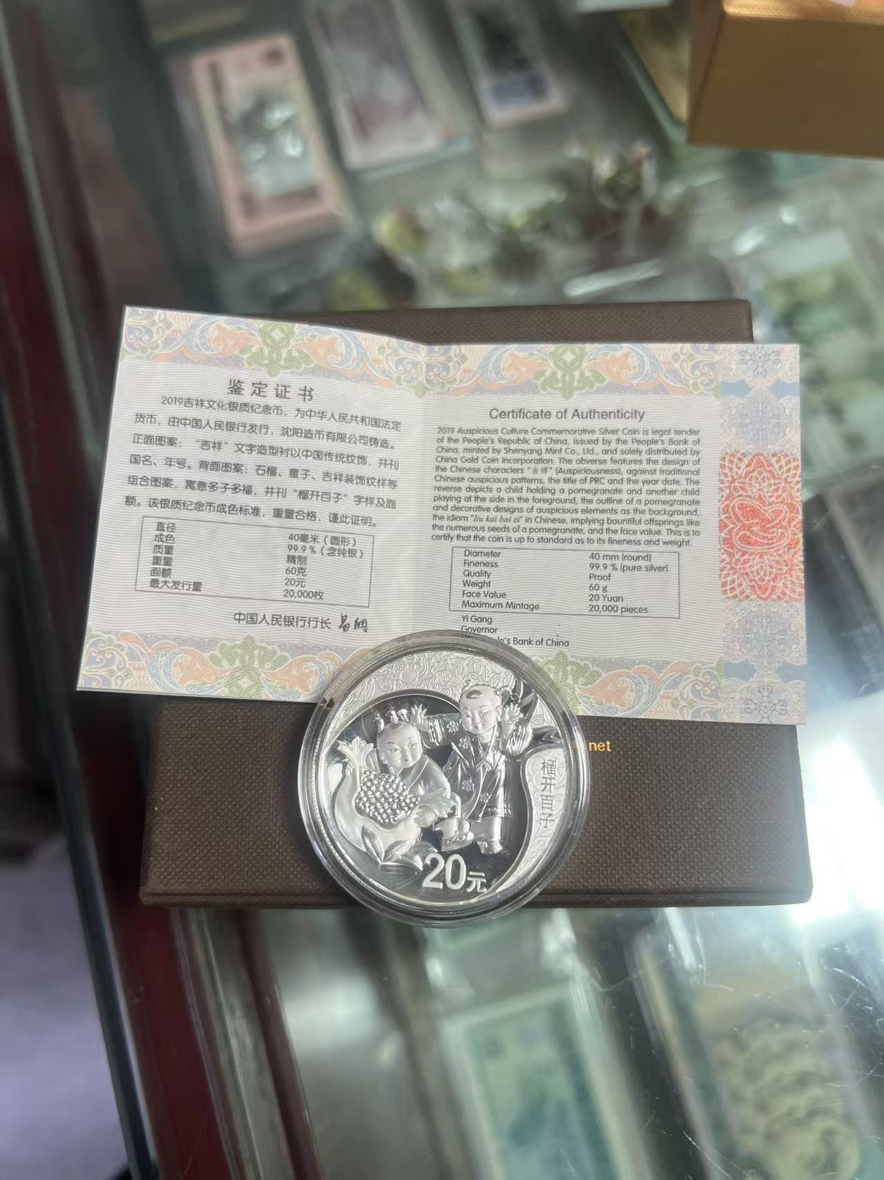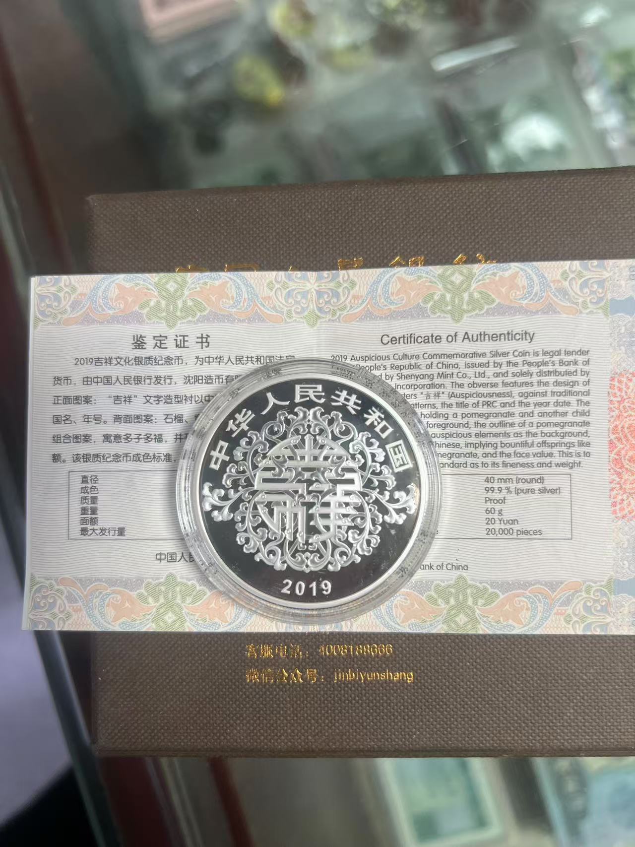 19年吉祥文化榴开百子60克银币,品相好,售1350元,款到包真到手。
