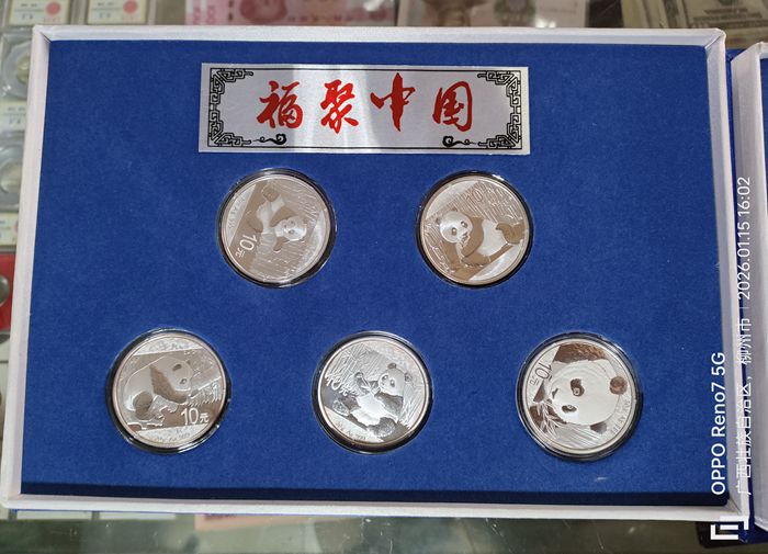 品如图,熊猫;14-15--16-17-18各一枚;两盒有证书;一起走6750元包邮