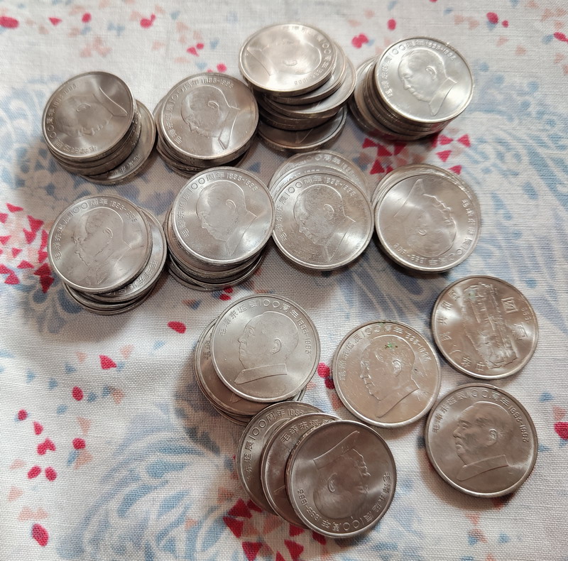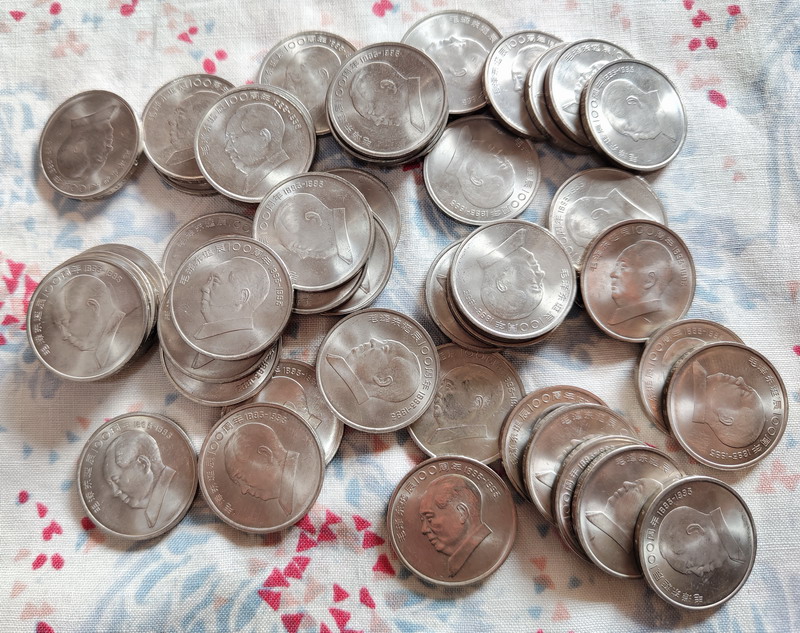 主席币35元一枚,有两枚氧化锈的50元。