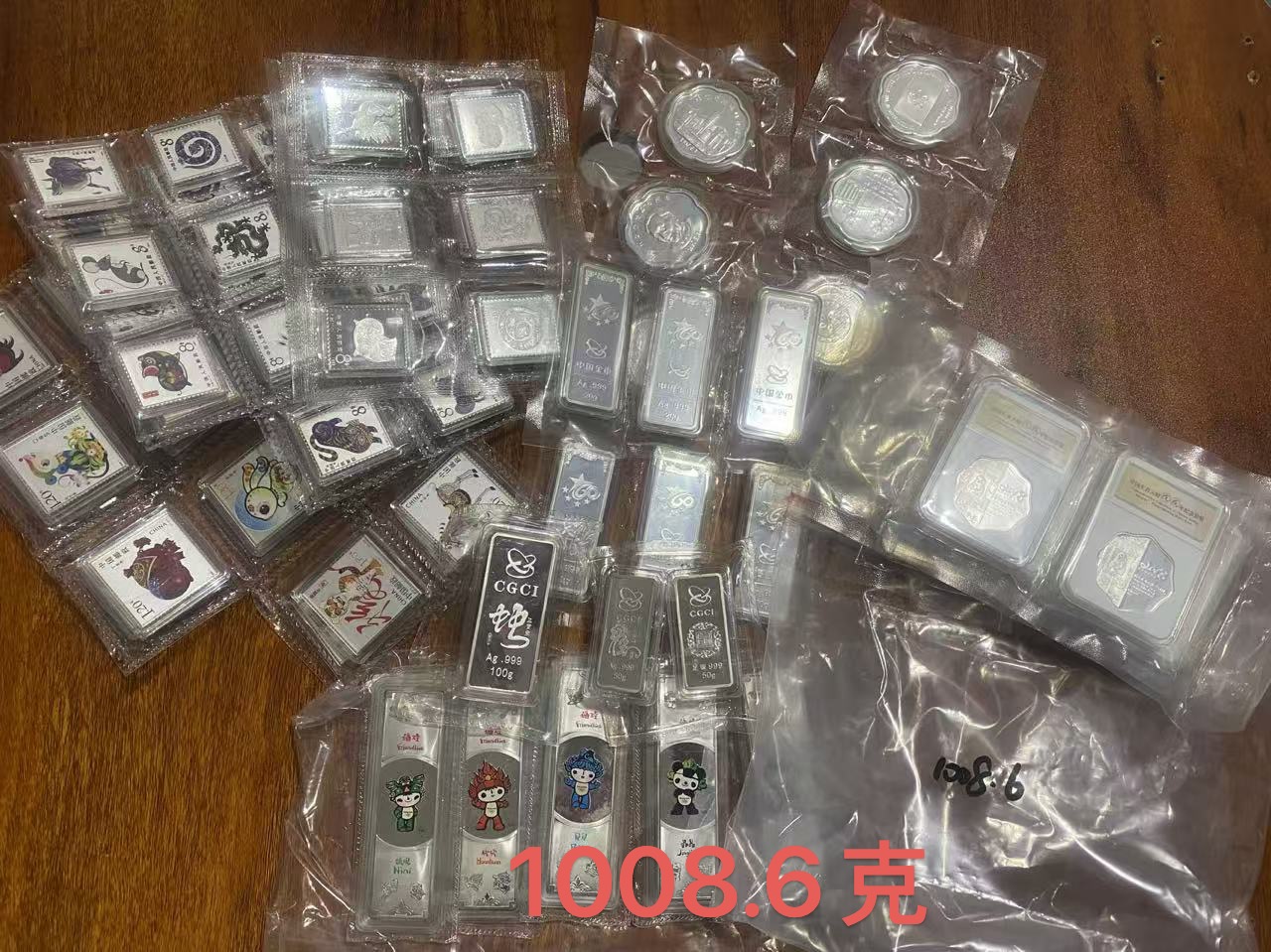 → 21元一克出1508.6克各种金总银条银章银邮票,包邮顺丰到手