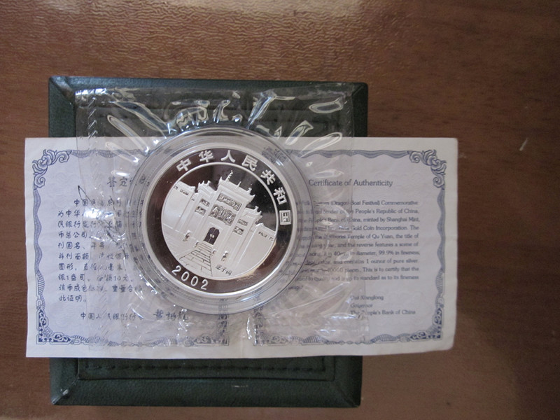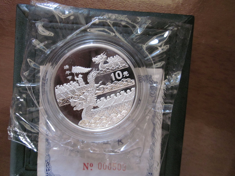 → 原盒原证、原封全品【02年端午节——龙舟银币】1枚750元