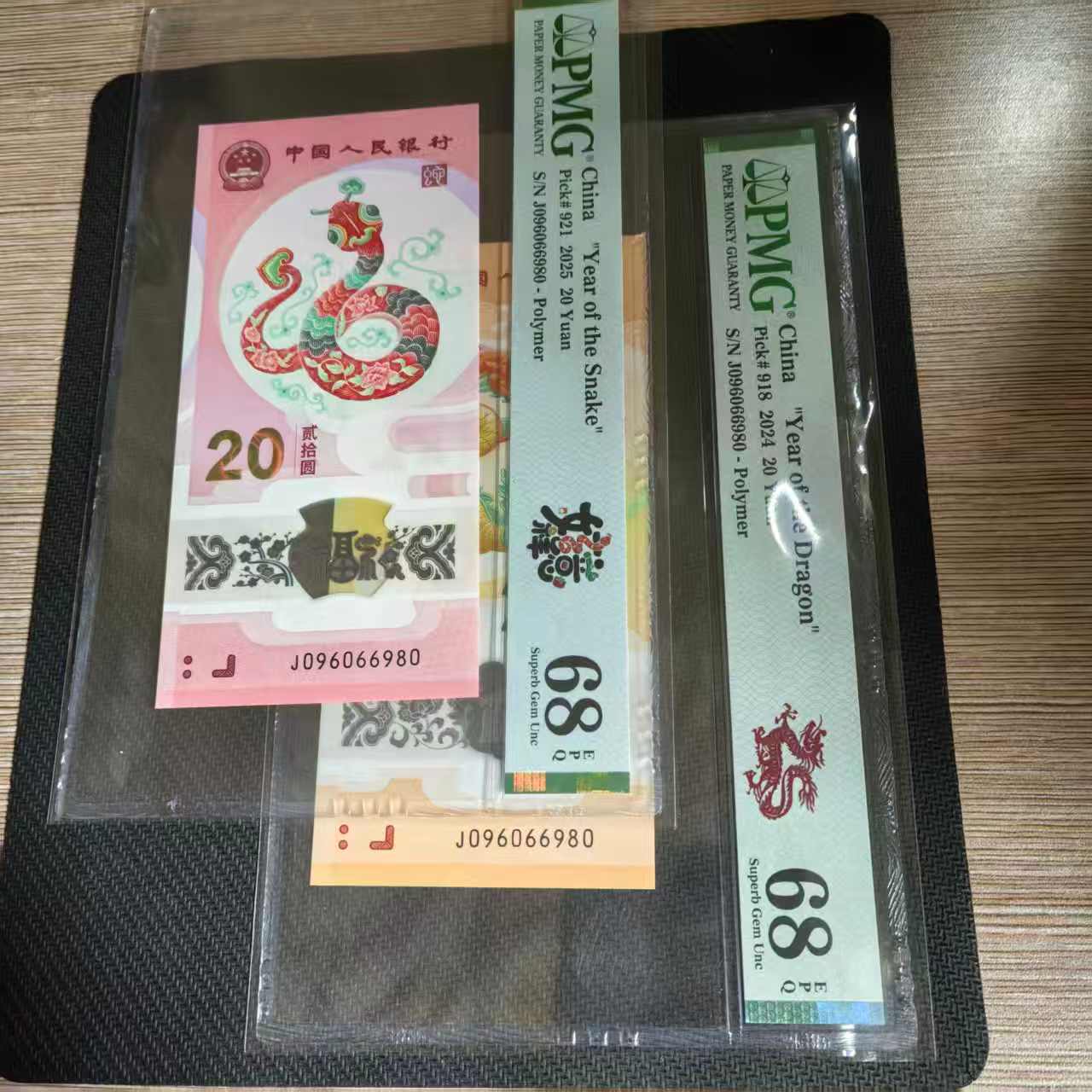 → 出售PMG 68分小龙钞,蛇钞圆圆号全同号一对