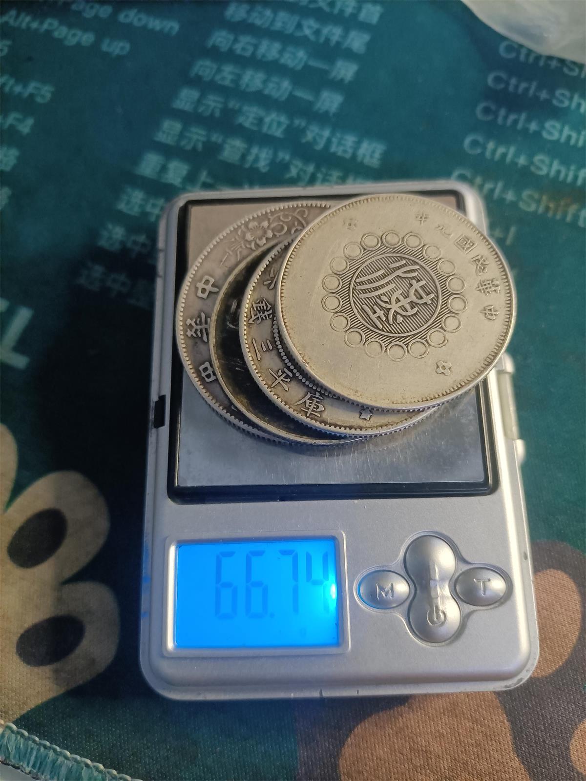 真银4枚,重66.7克,光谱仪分析含银量:小头83%,四川五角88%,唐军长80%,船85%,吸银石翻边顺畅,比银价低卖,一起1050元包顺丰!