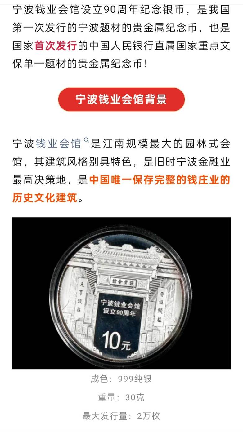银价出30克银币 宁波钱业