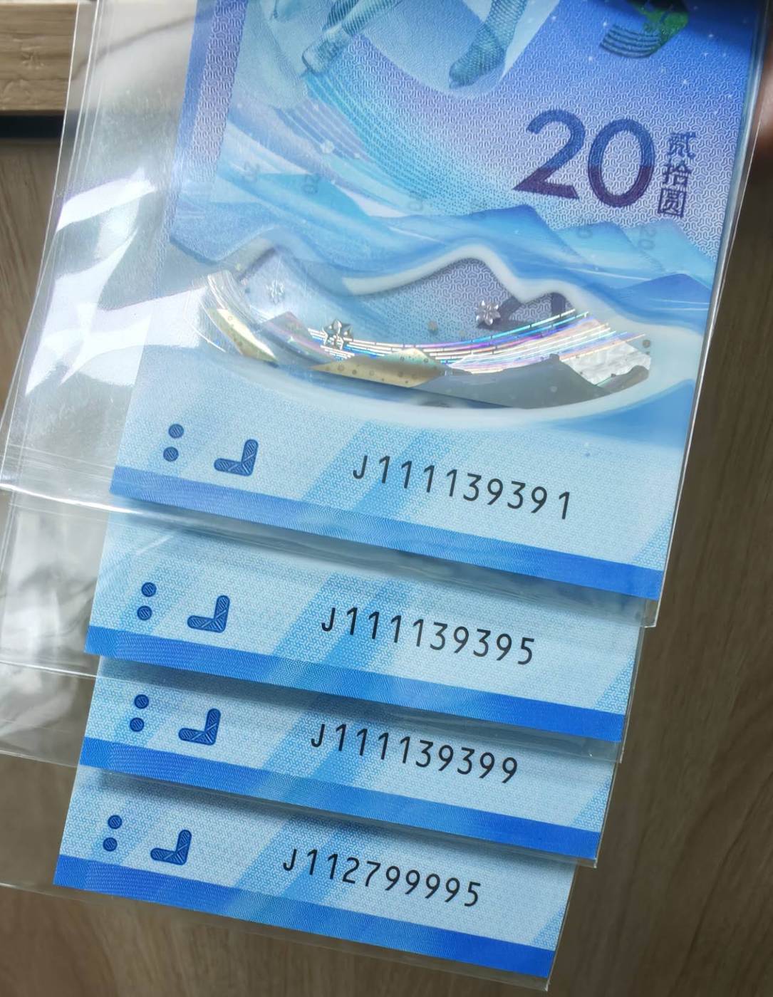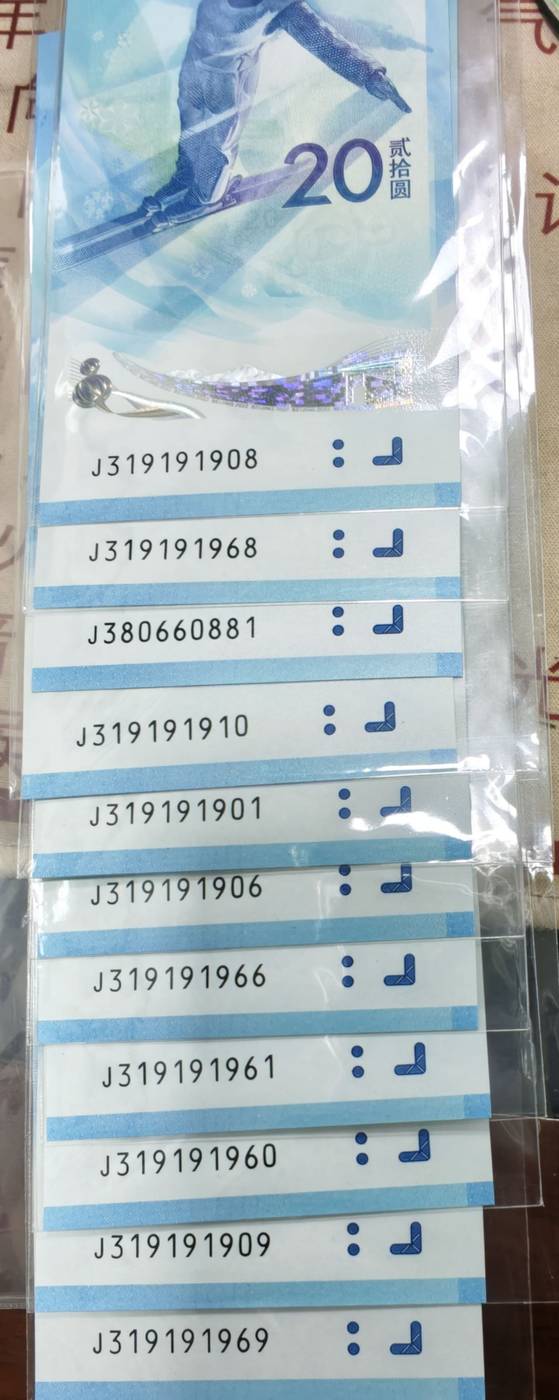 70钞+冬奥钞前顺后豹一对:7654333 售350元。