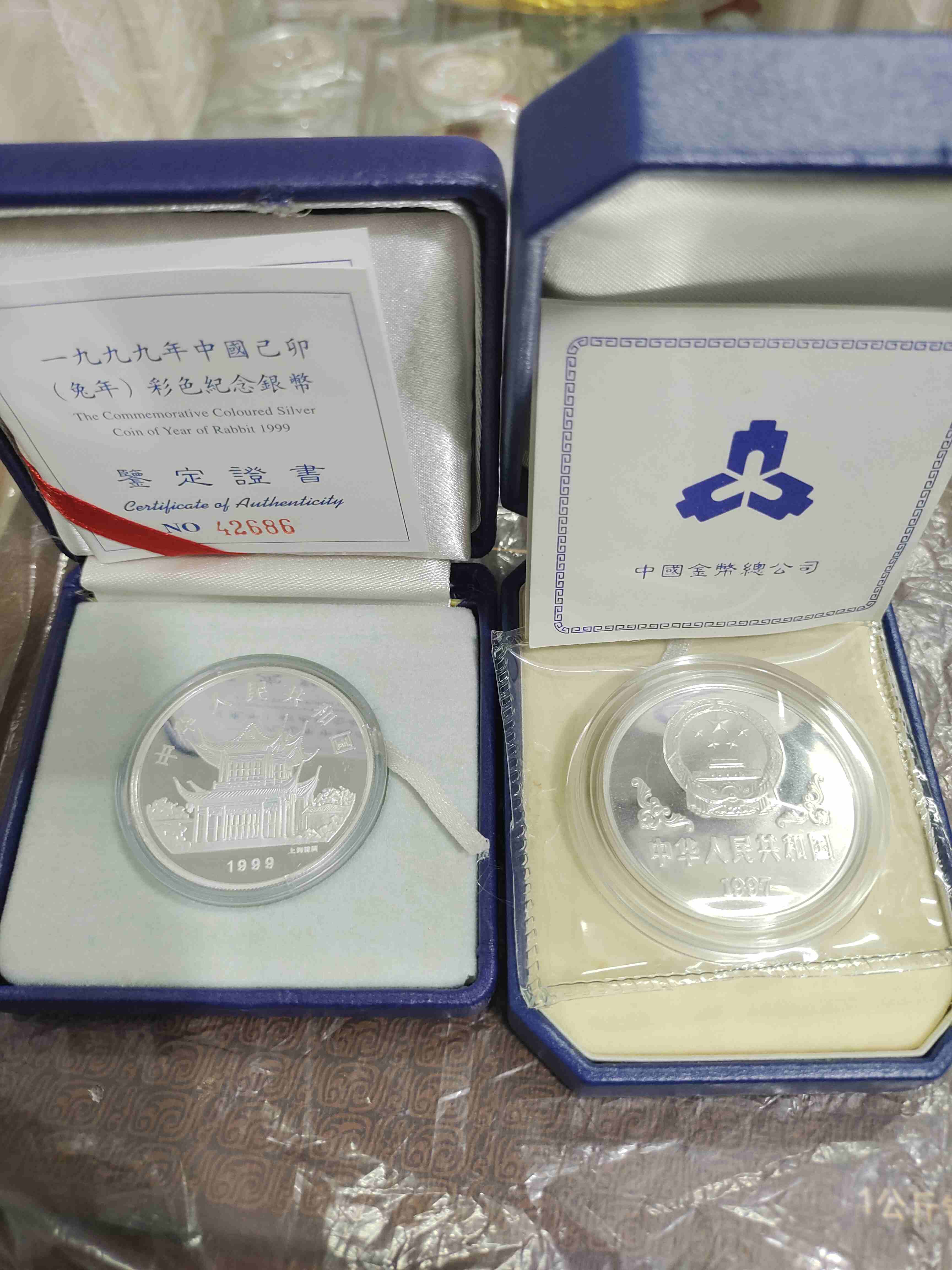 97本银牛,99彩银兔,盒证齐全,品相好,两枚一起出1780包顺丰,不议价,议价勿扰