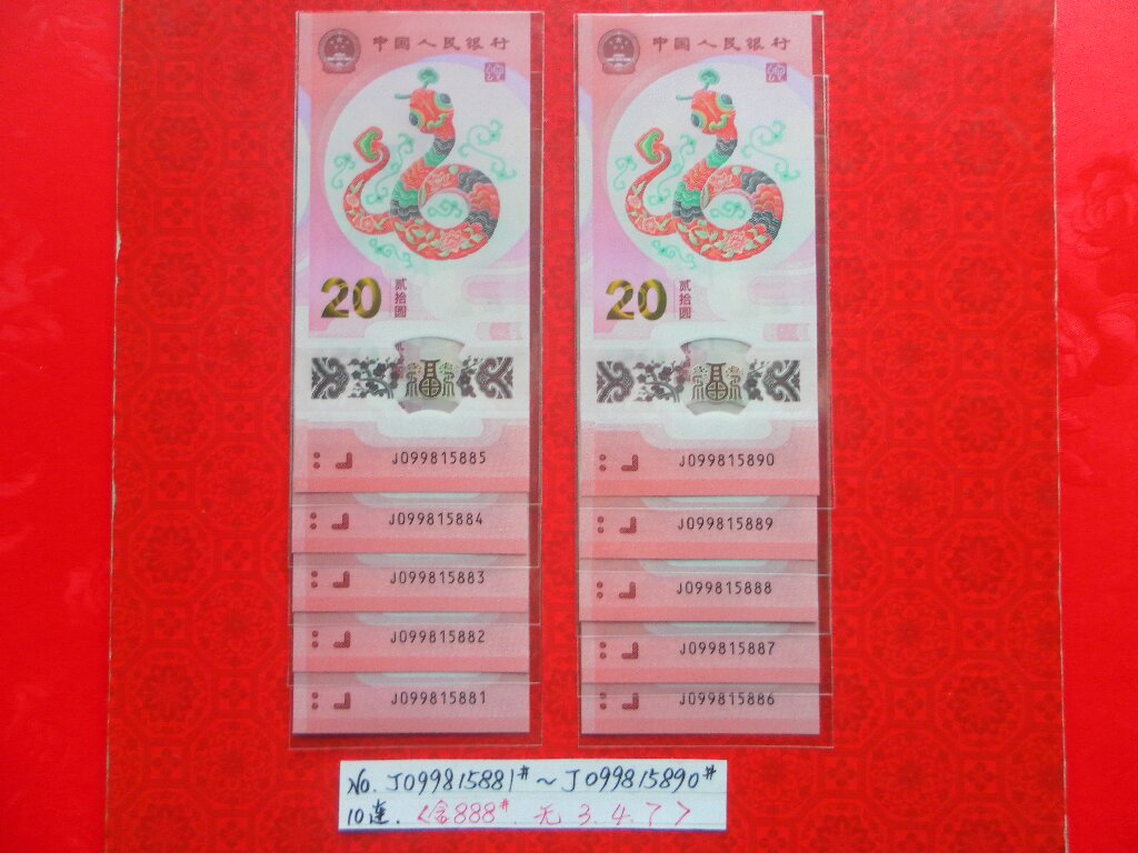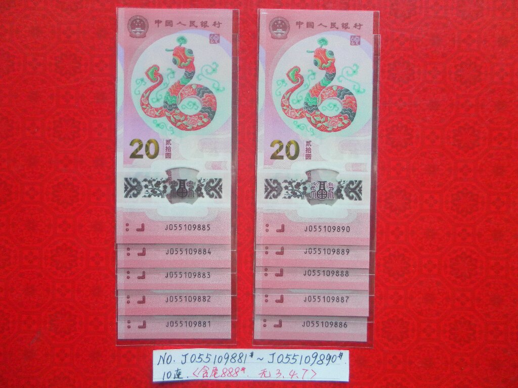出蛇钞靓号(尾888)金马号、如意号、如意王:标准10连。 包品、包邮。