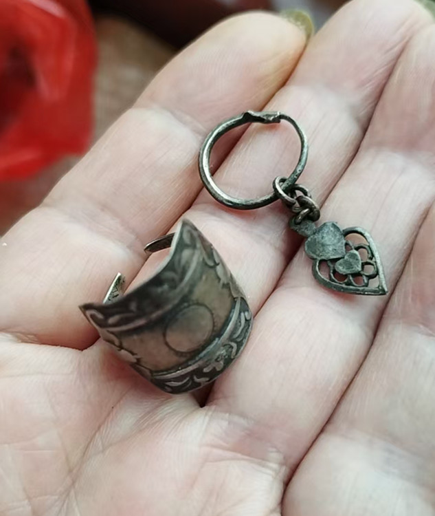 3.    清末民初银戒指(已断脚),银耳环(单)。重4.6克。