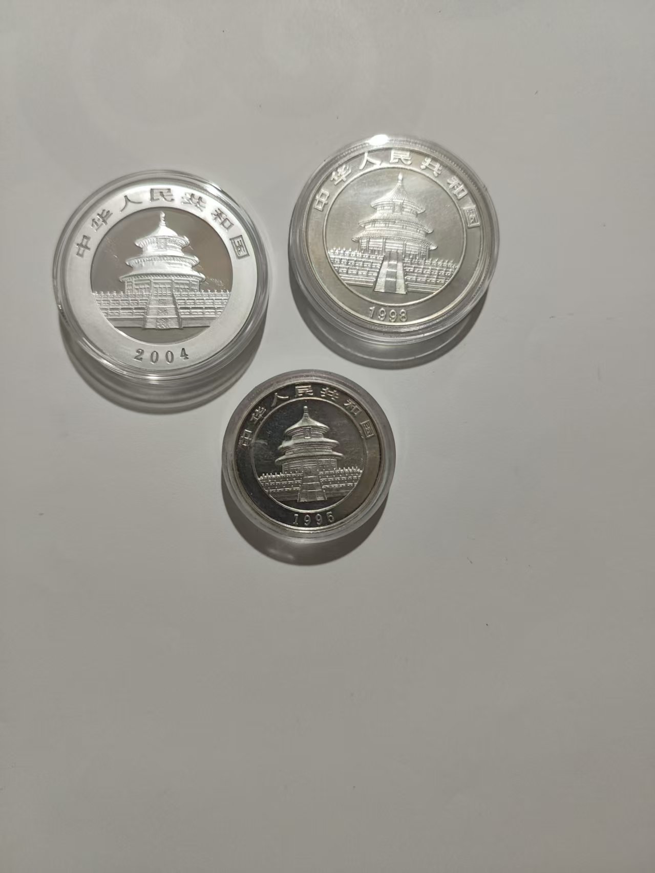 95年1/2盎司银苗1枚,98年彩银猫1枚,04银猫1枚,95年98猫有点氧化,一起走21.5元克,包顺丰。
