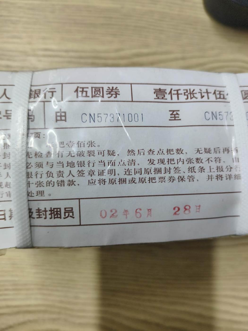 北方货,原捆,钱币拿不出来,无斑,原包装有两个地方破了,边有点红墨水!15500元!包邮寄!