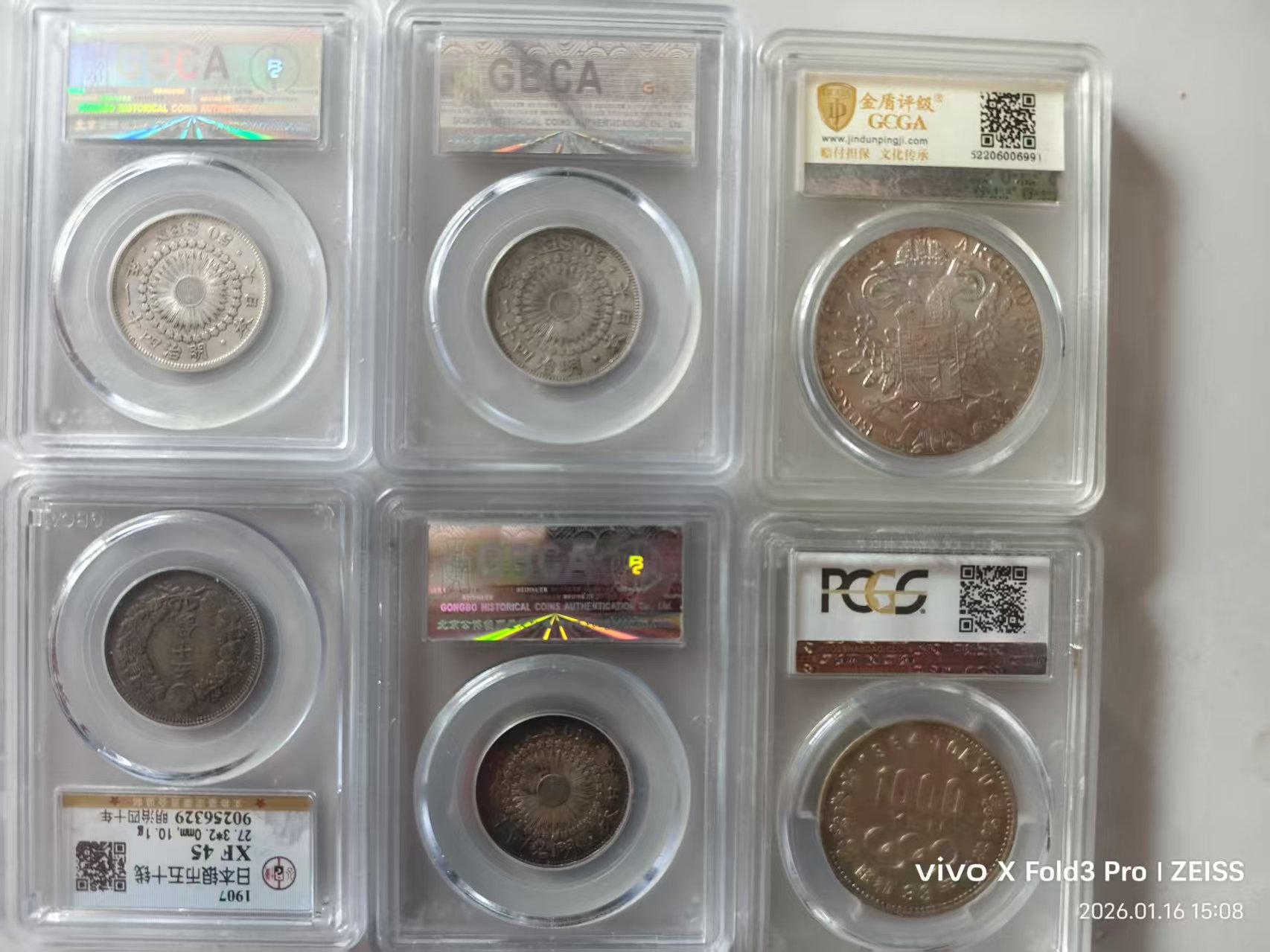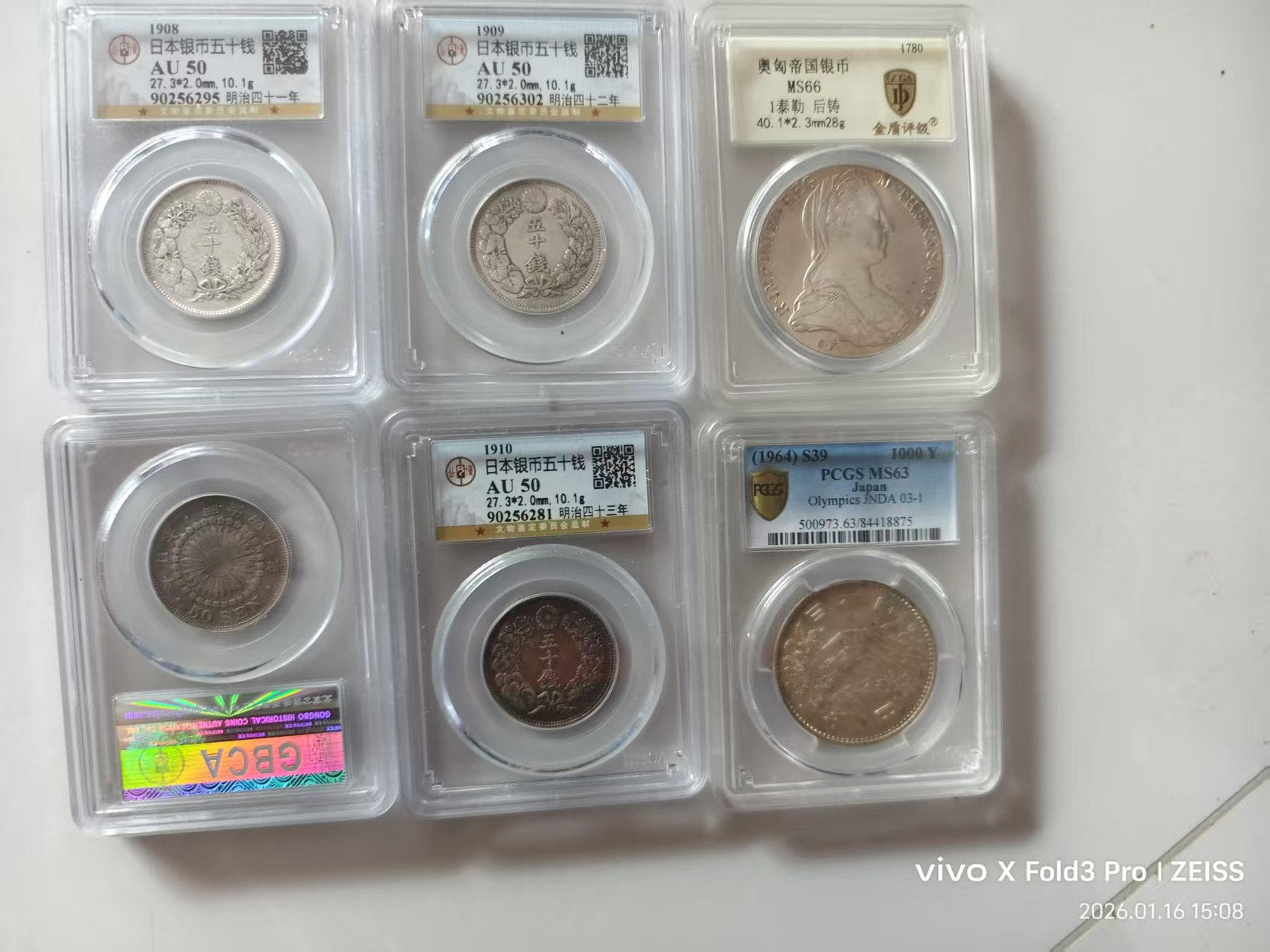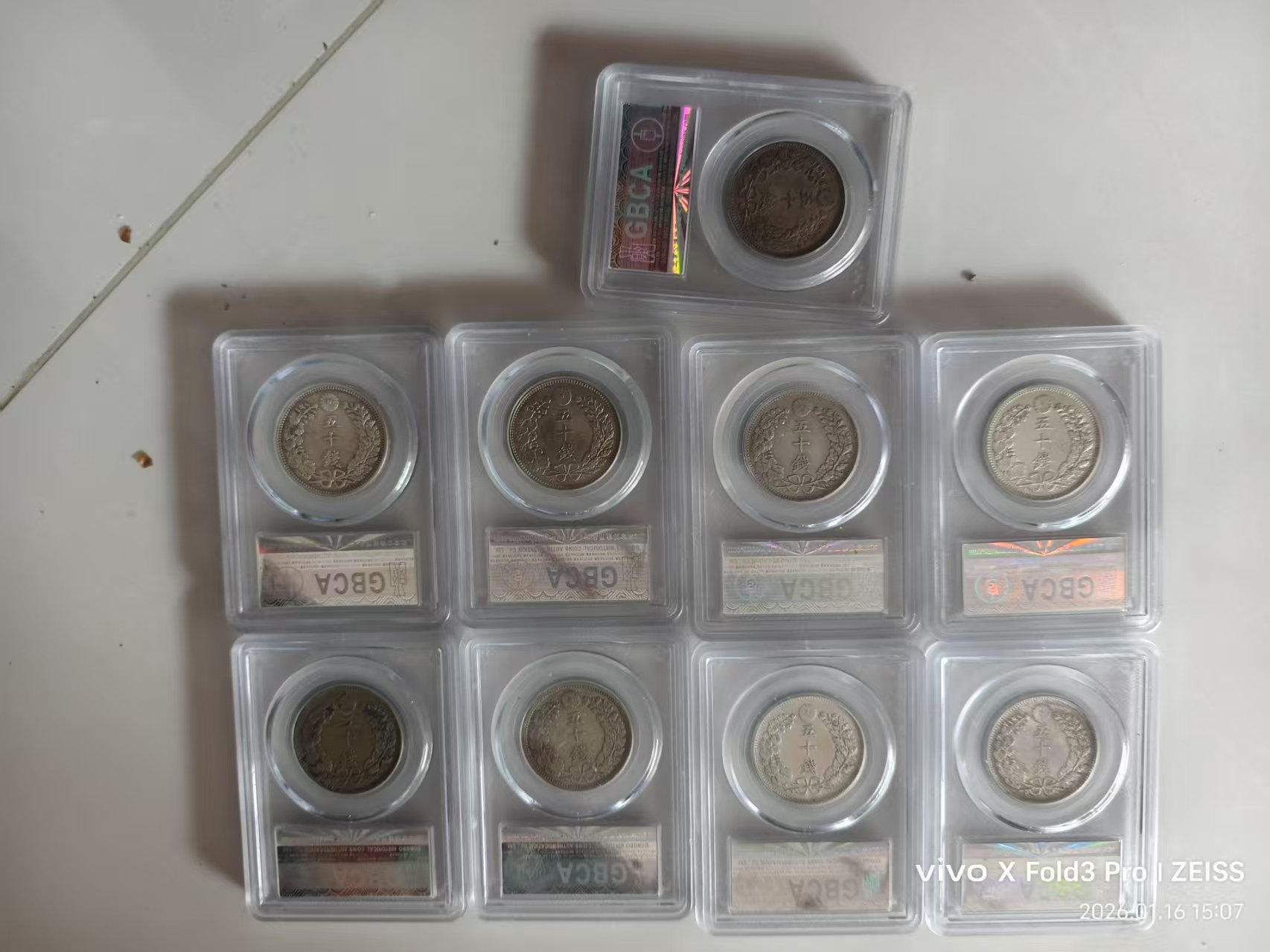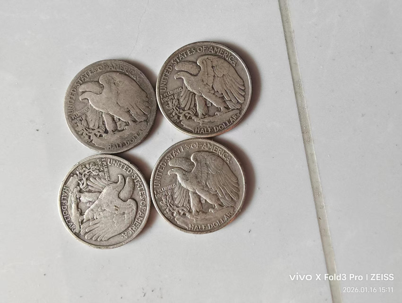 日本龙50钱9枚x300元。50钱花4枚x260元。大奶妈400元一枚。鹰4x280.福寿日本银币3x120元。另一枚银币10克左右180元。三包到手