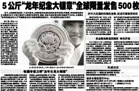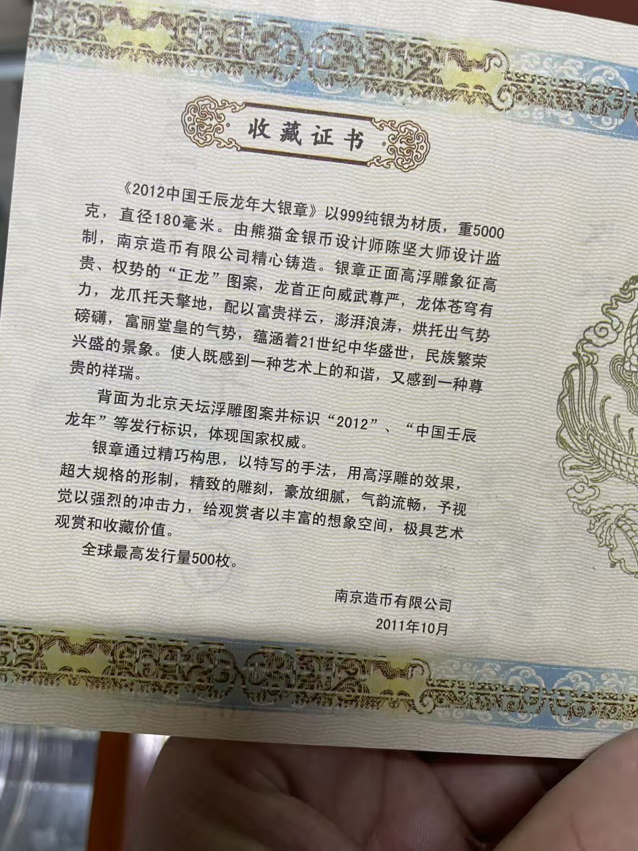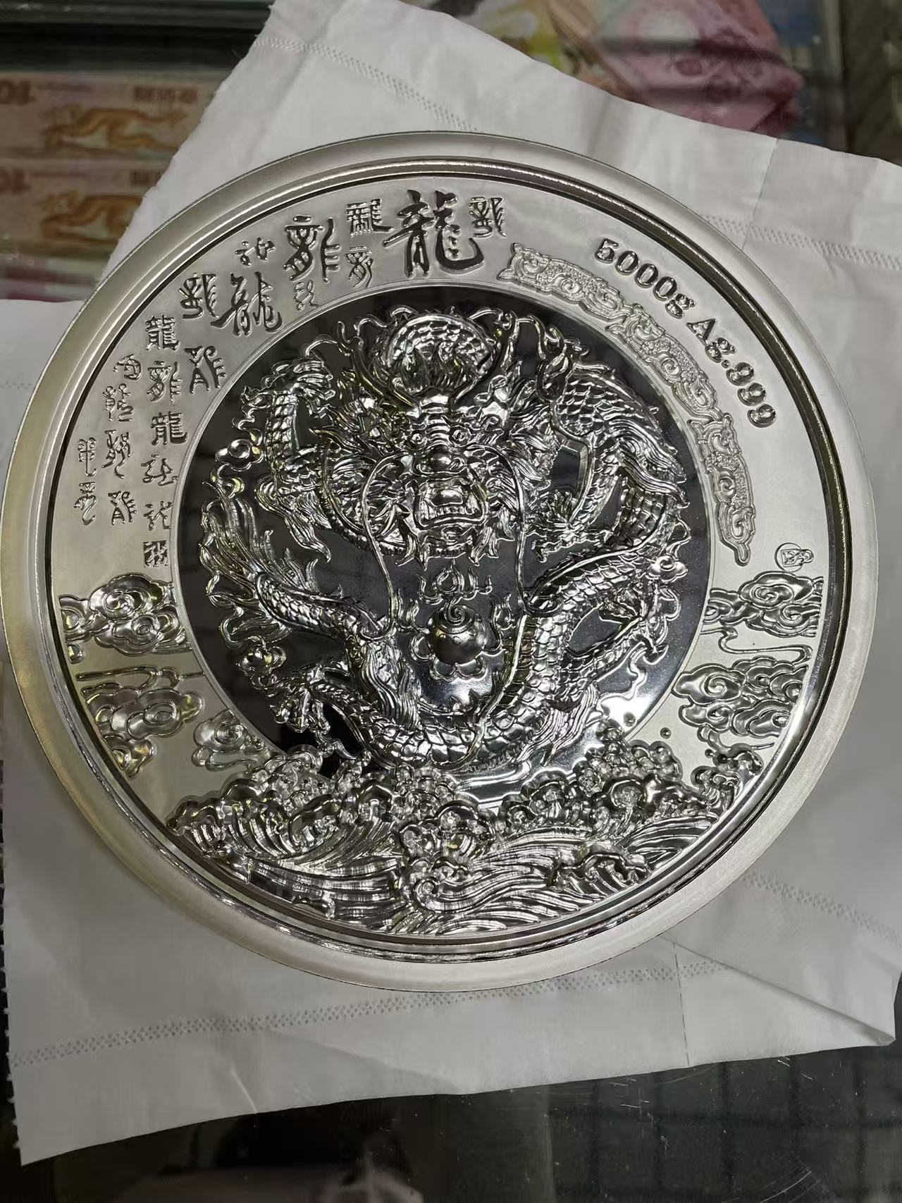 5000克龙年大银章 2012年发行,工艺精美,发行量只有500枚,盒证都在,暂定克价29元,非偏远包顺丰陆运
