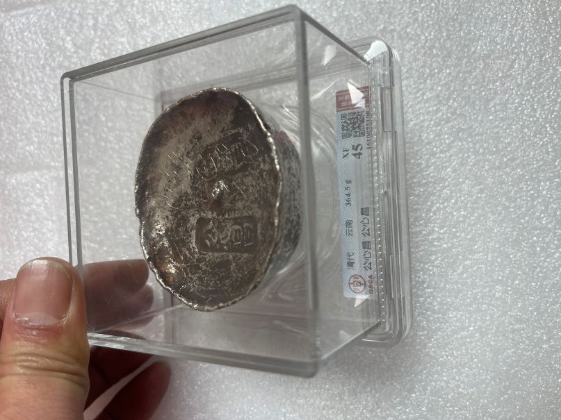出十两川锭,两个.合記银定,公心昌,公心昌!