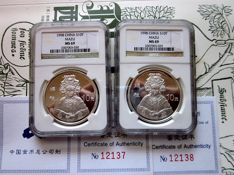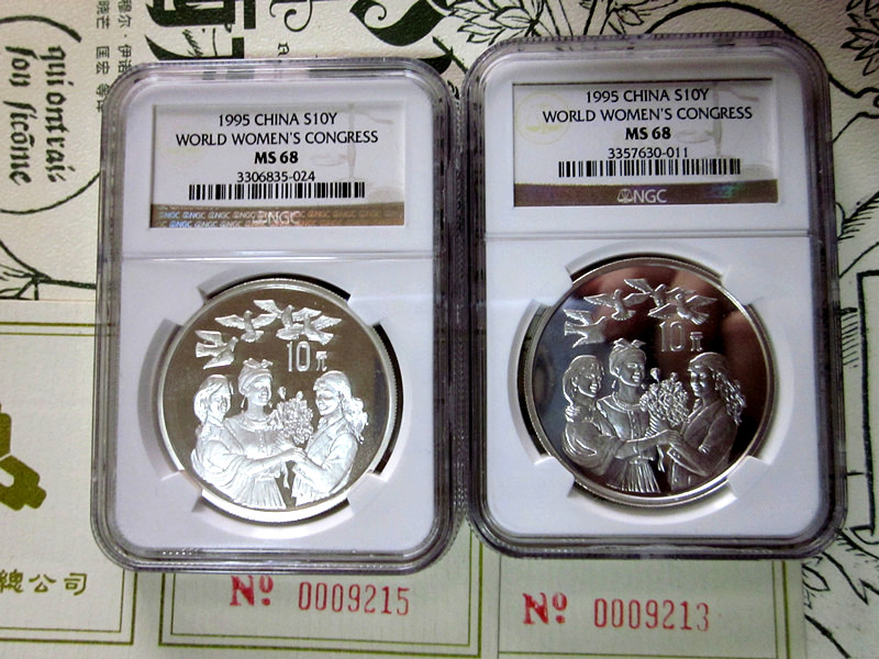 投资资讯网交易在线钱币大卖场现代金银贵金属币 → 美国本土评级 NGC 老标【95世妇会、98妈祖】一盎司银币