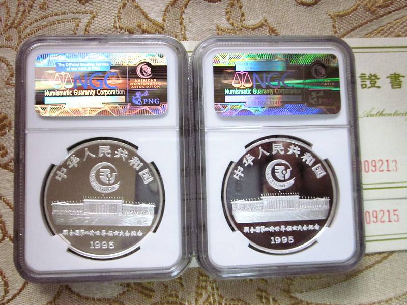 美国本土评级 NGC 老标【95世妇会、98妈祖】一盎司银币