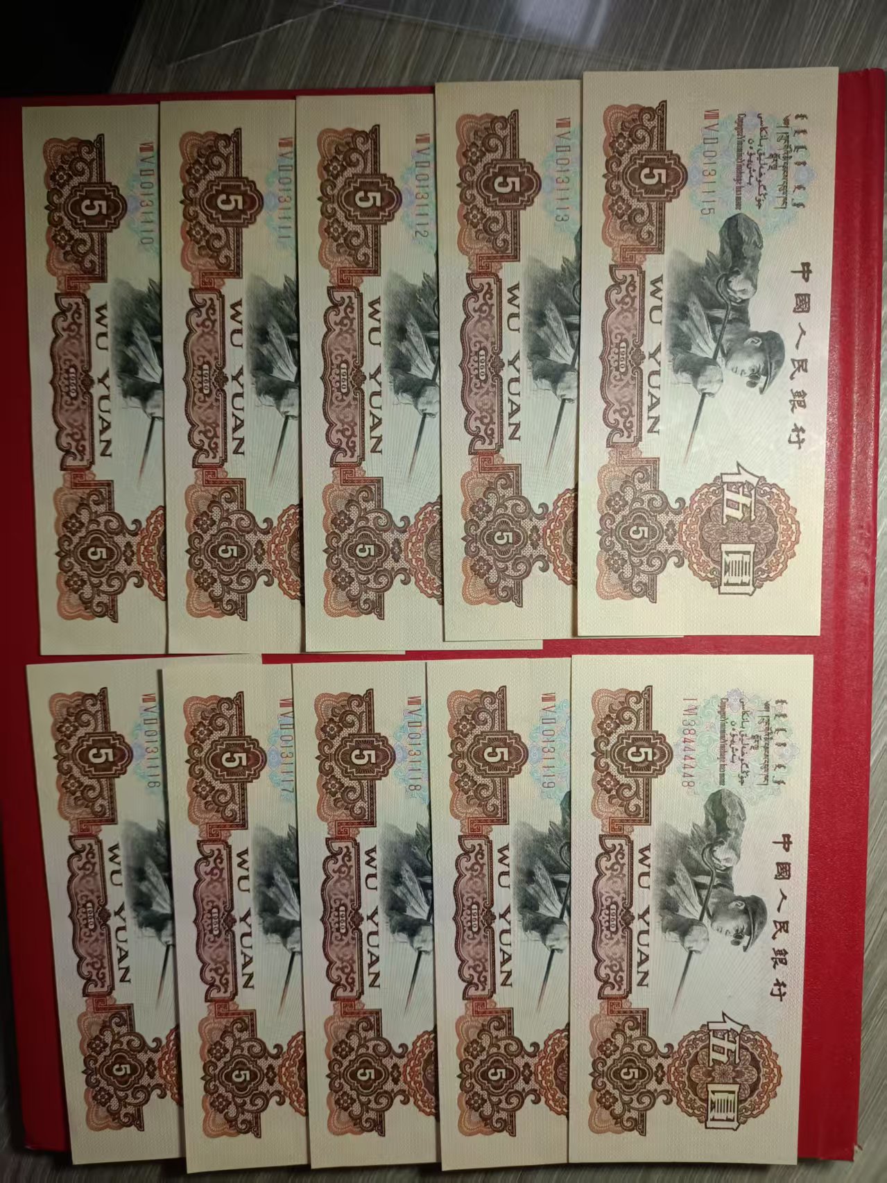 炼钢 连号 1110-1113 1115-1119 38444448 尾号11113那张中间折 灯下基本无斑边侧一点点,一共 10张3500