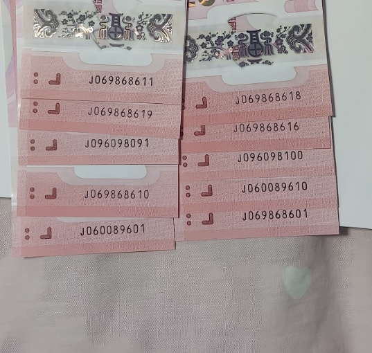 260一张出蛇钞五福倒置号,号码如图,共10张,一起出