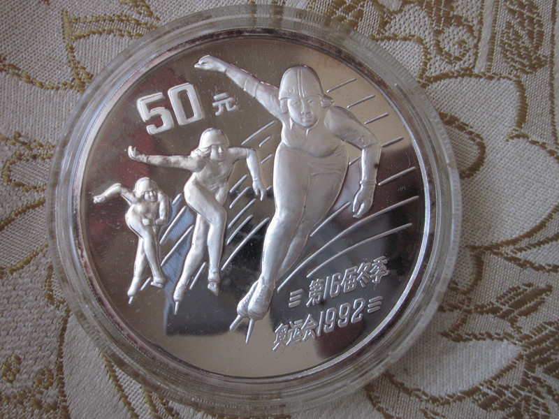 → 海外回流、外文证书【1990年速滑】五盎司银币