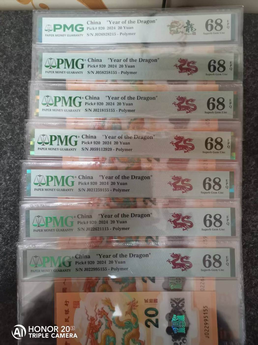 出小龙钞无347满号pmg68分 550一张通走包邮电联确认