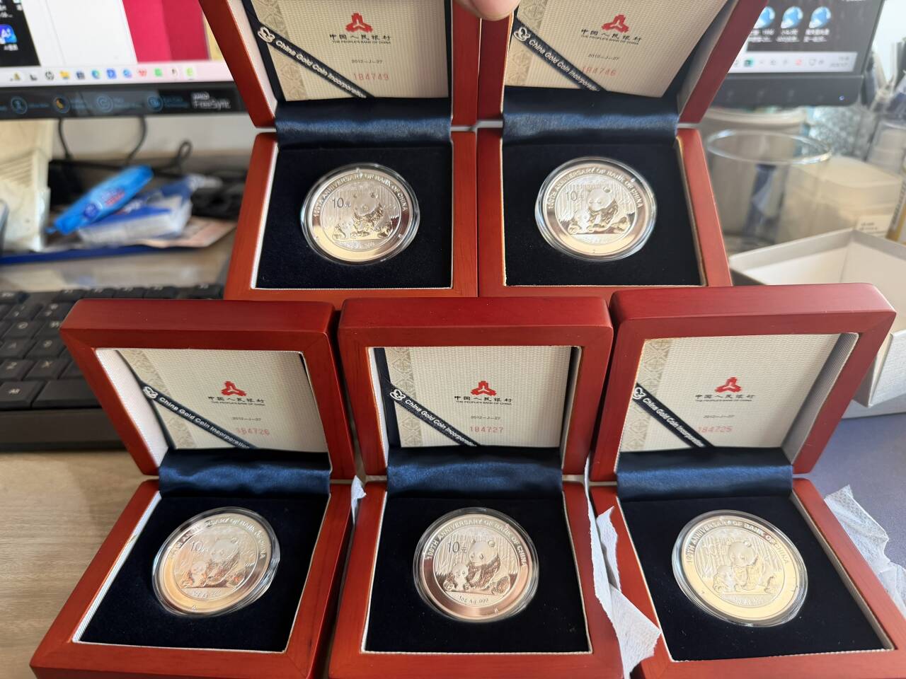 个个保真,2012年银猫 带原盒原证书,中行100周年加字版 5个,1个700元包快,送原装盒子,一起走,不要盒子-5元 695一个。