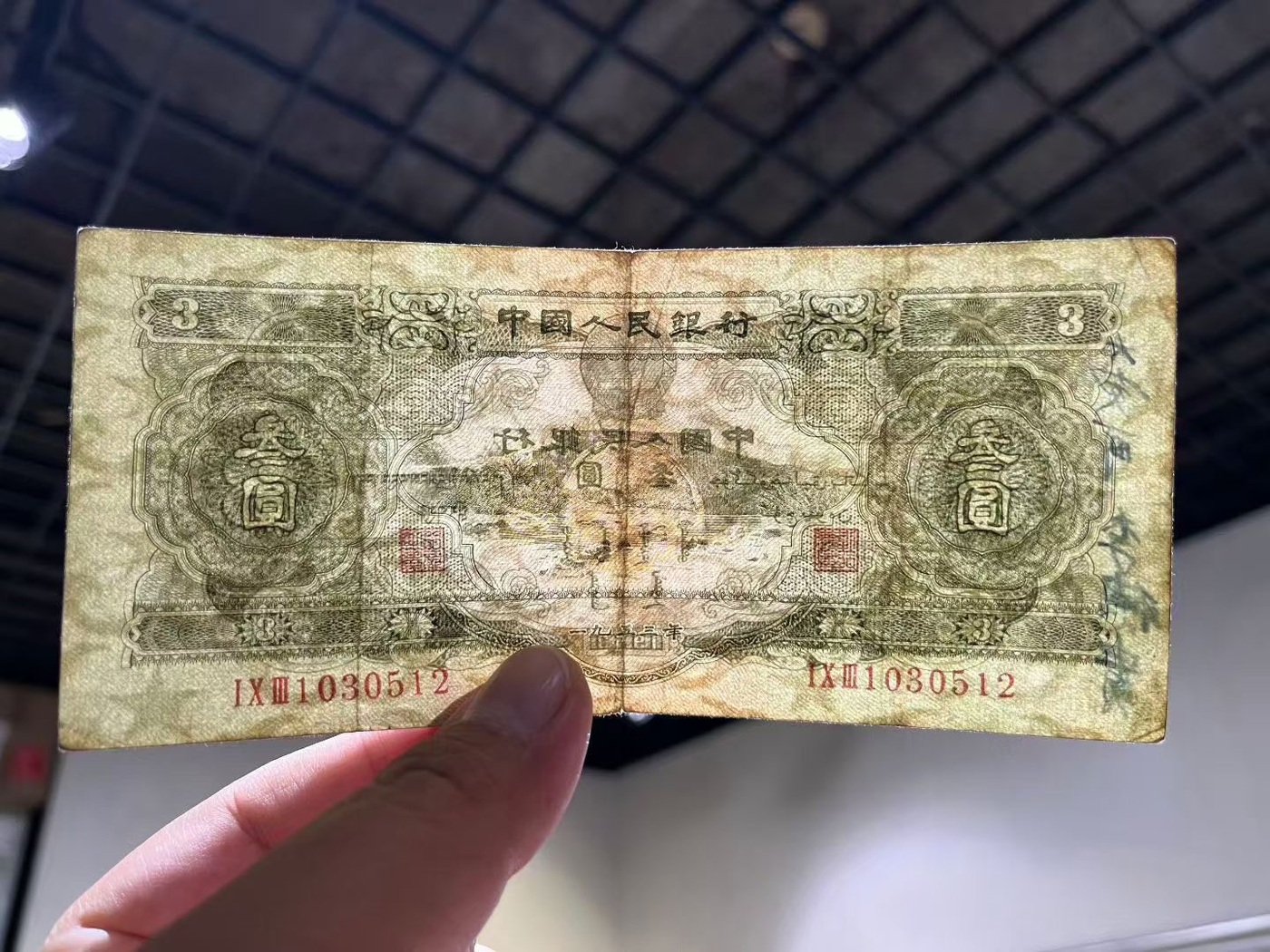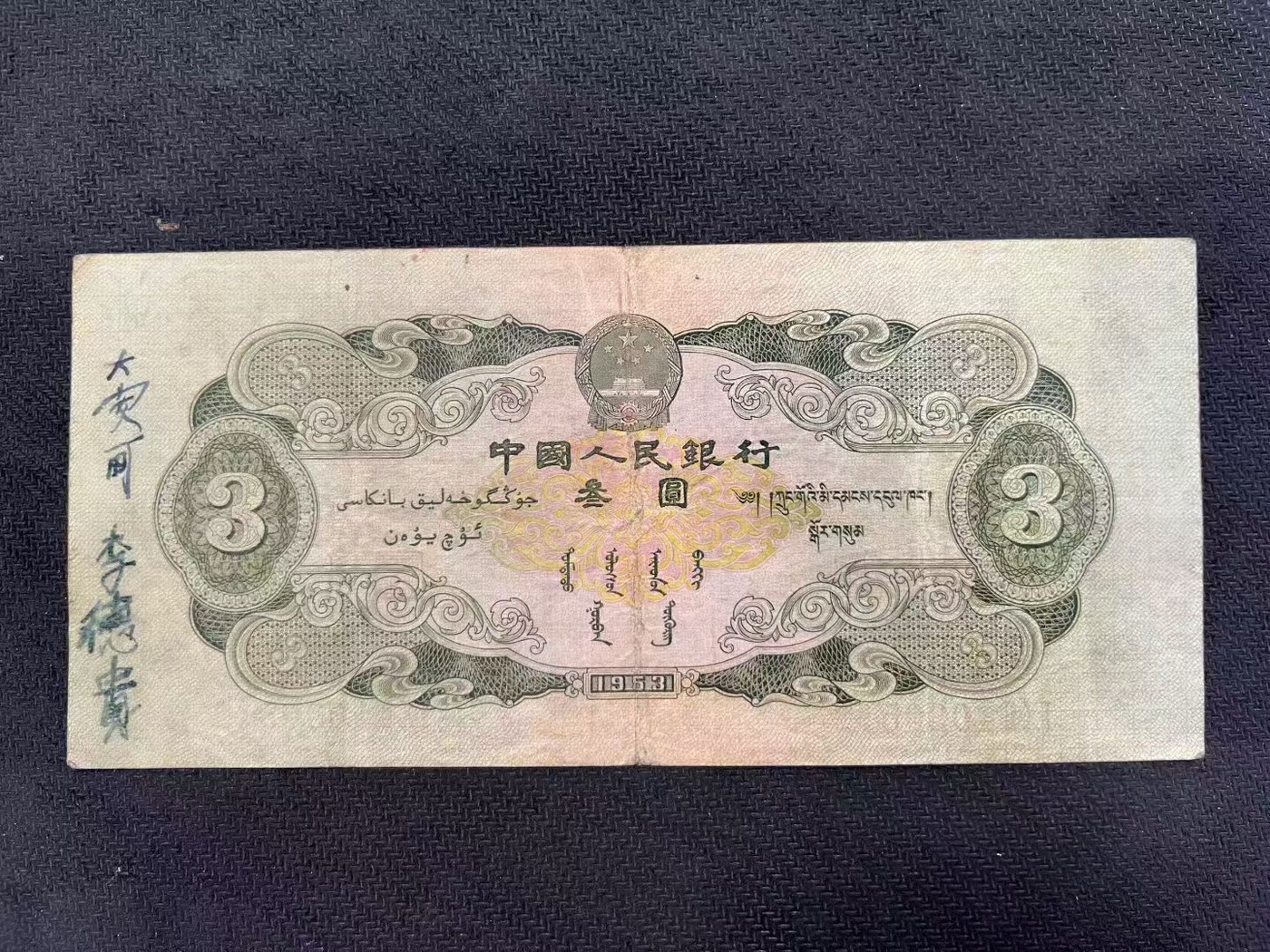 原票绿叁圆 背面是钢笔字 容易清理 9980元