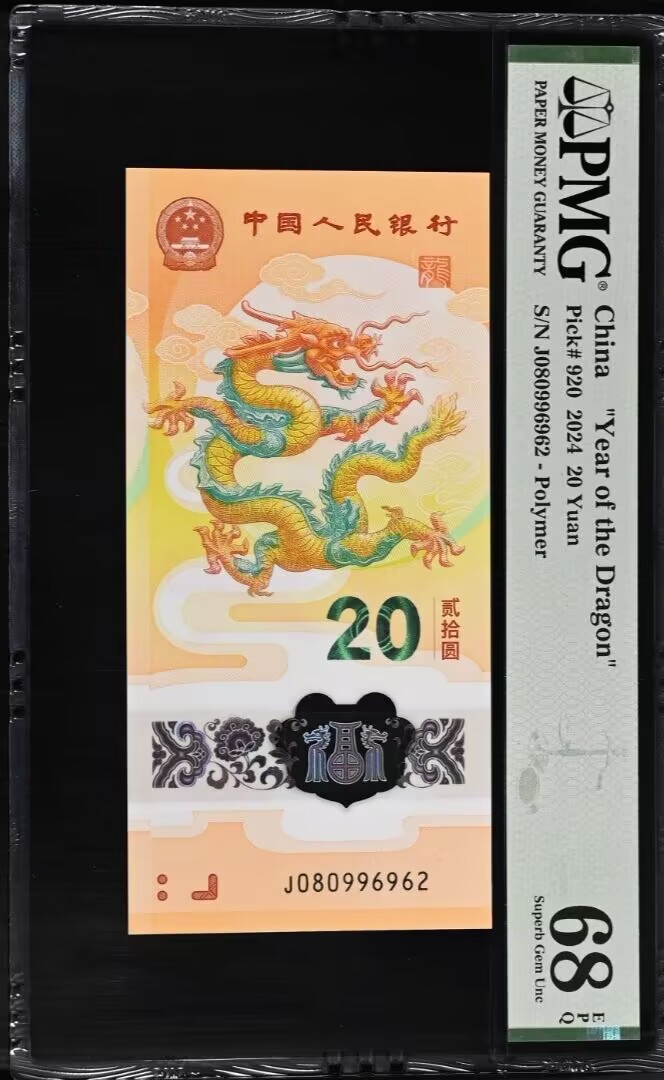 → 出龙钞PMG68分龙珠号J080996962