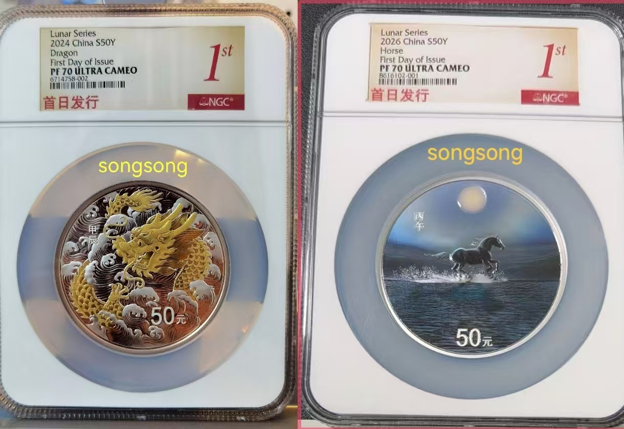 龙马精神,全网仅此一对,2枚都是NGC首日红1标,红1标比首日金兰要少得多,懂的都懂