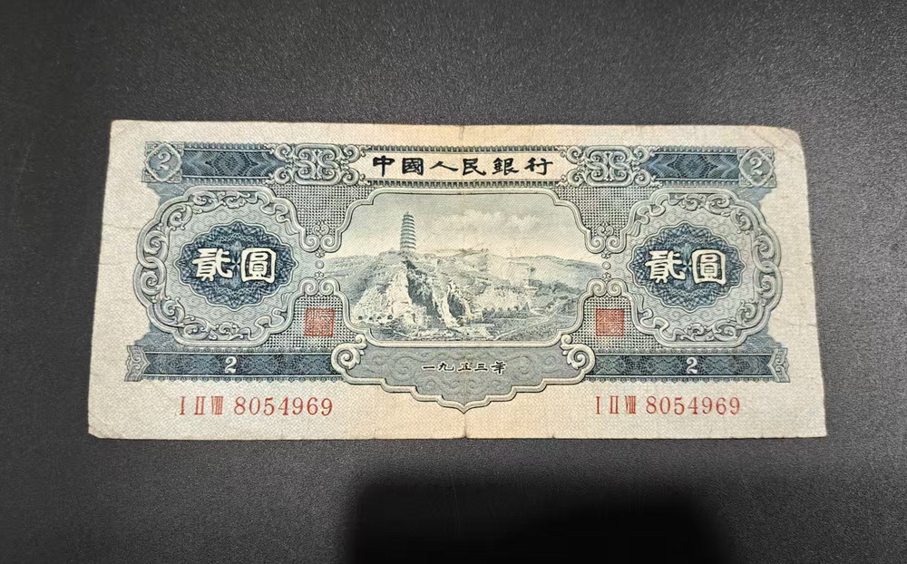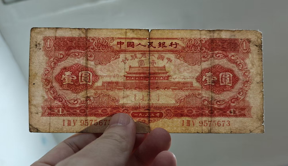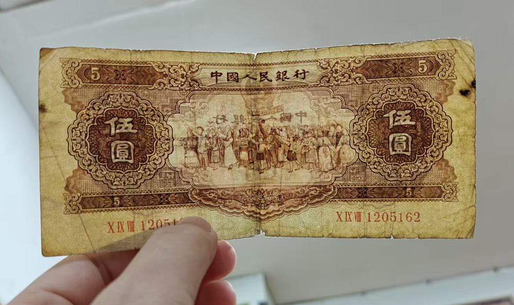 红一元,宝塔山,黄五元
