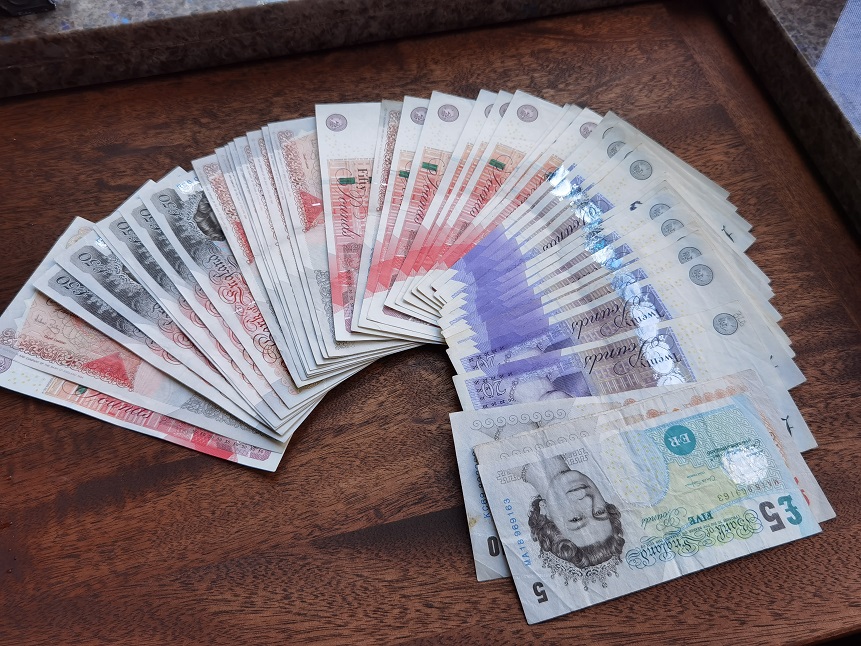如图,50的有27张,20的有12张,10元的4张,5元的1张。