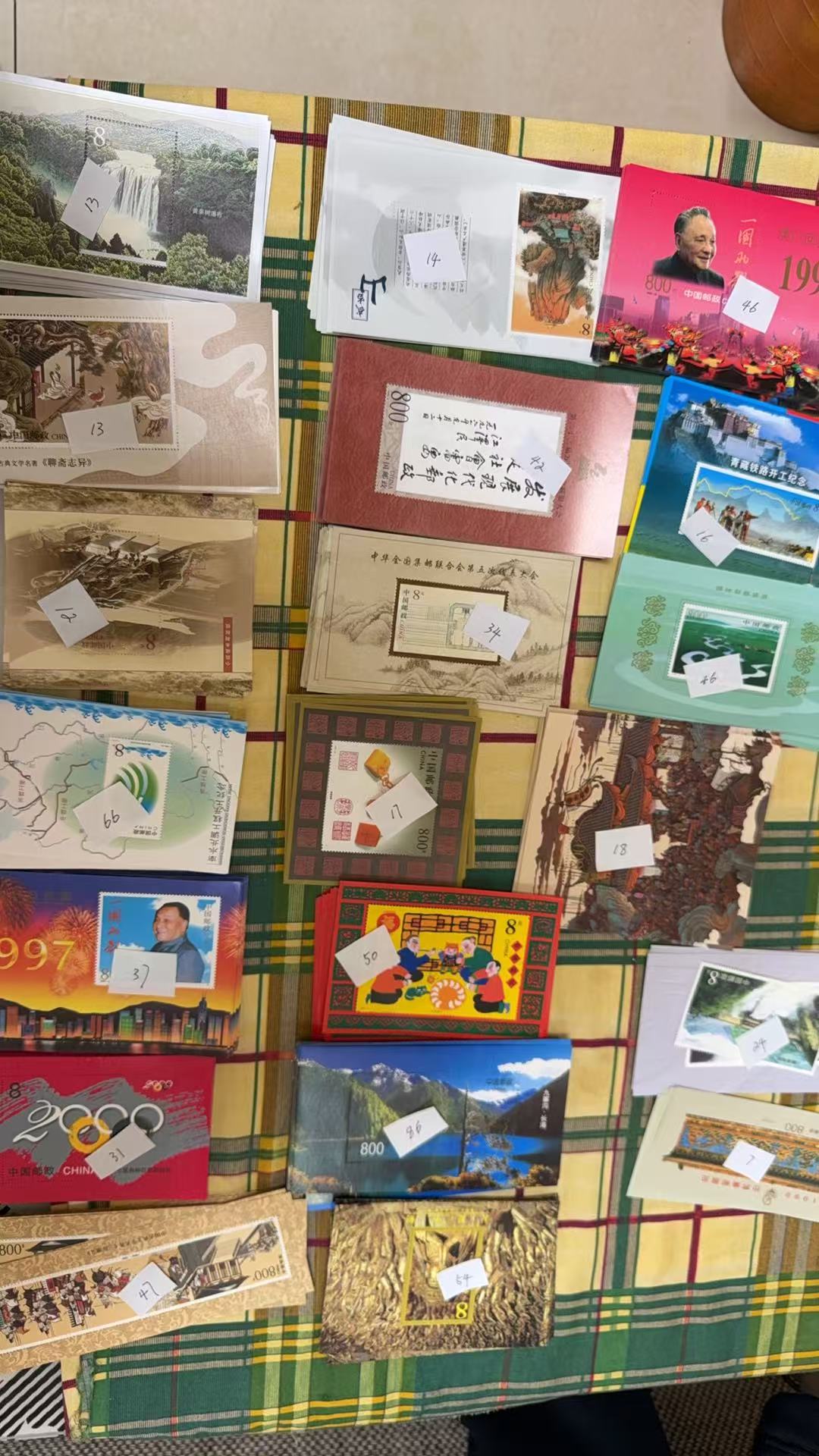 5.4元,99-9万国400多张,98万国少量,瘦西湖等少量,共计537枚,售价2.6/枚