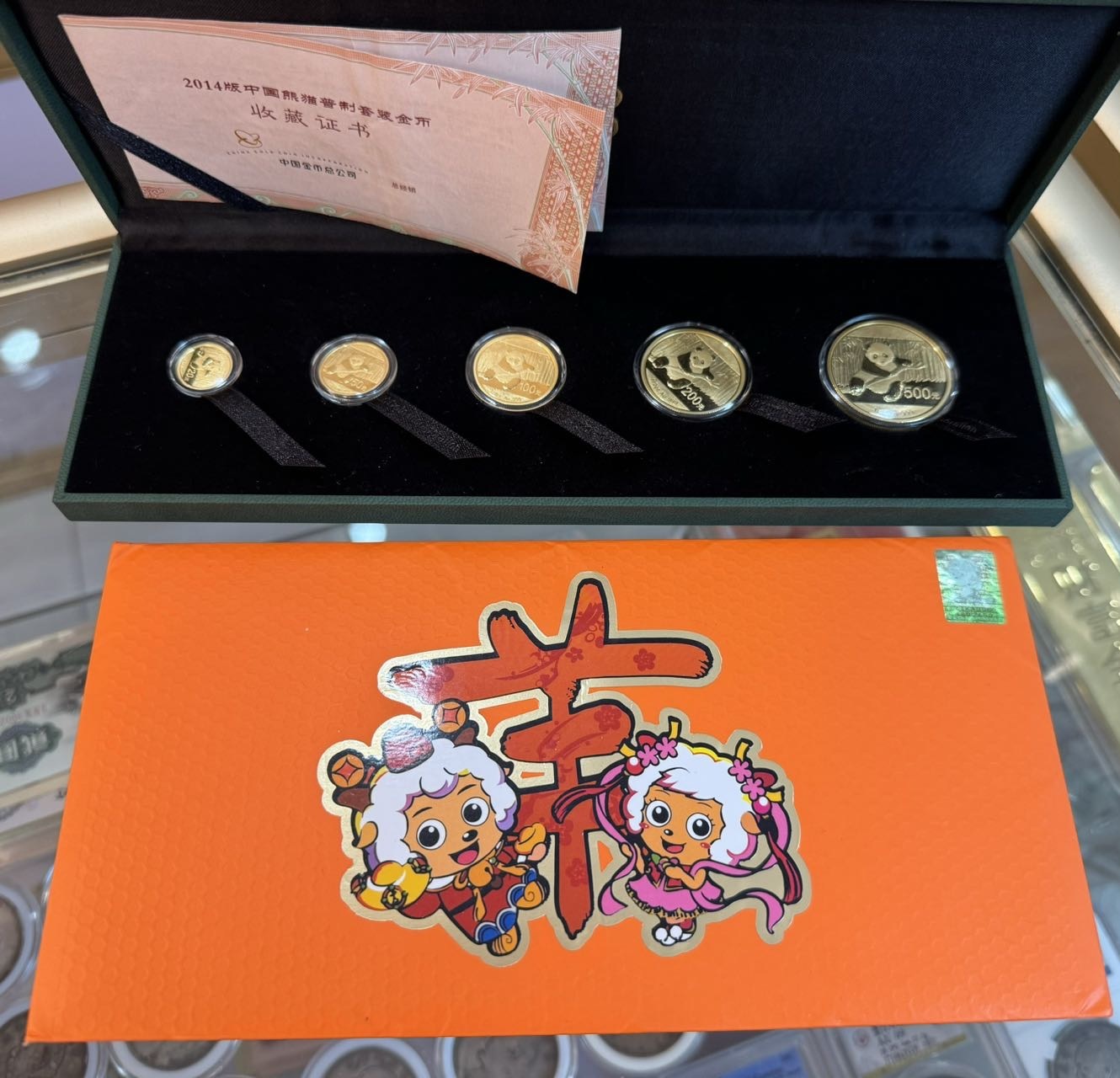 → 售14年熊猫金币一套 建行羊钞一张