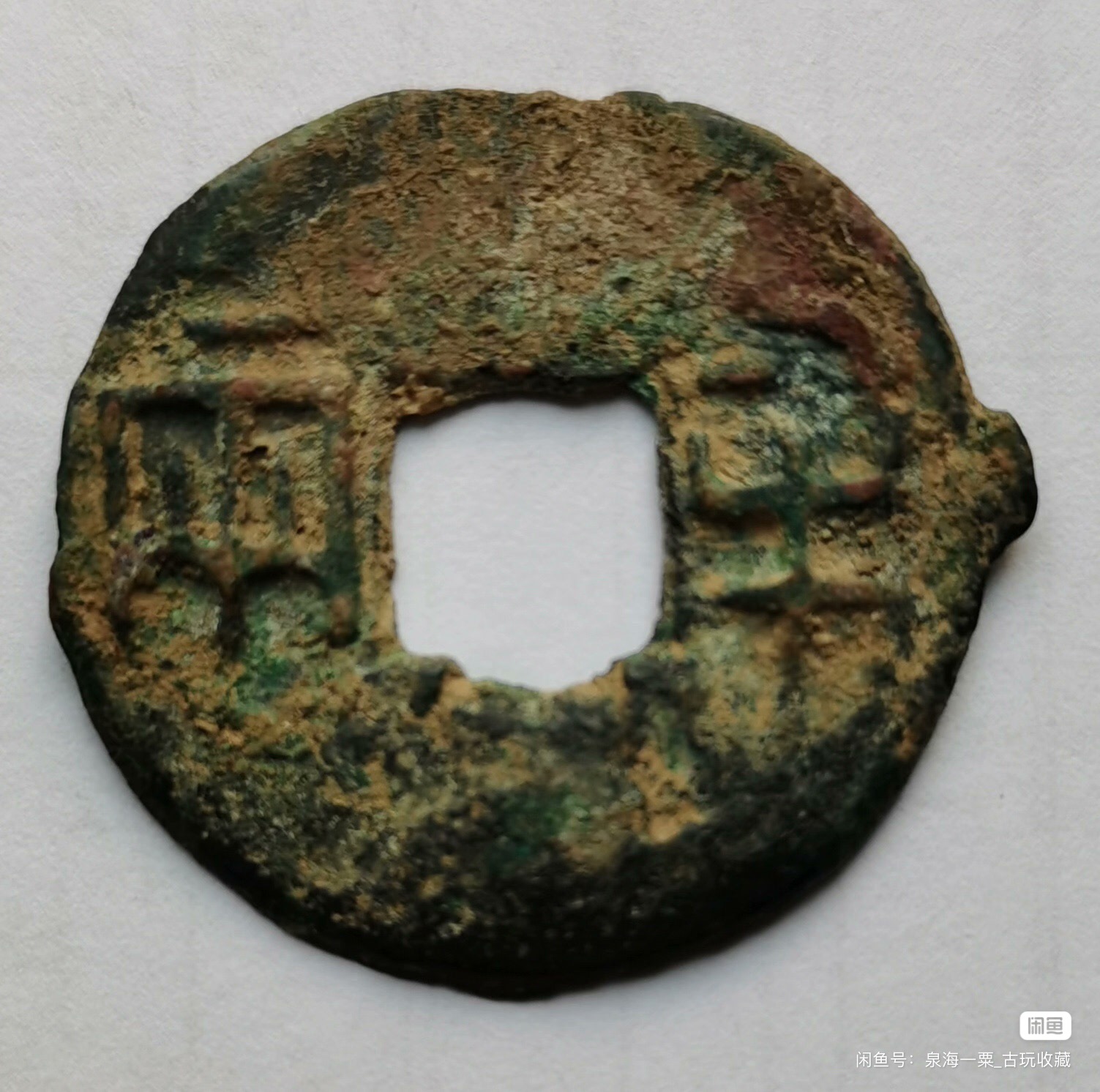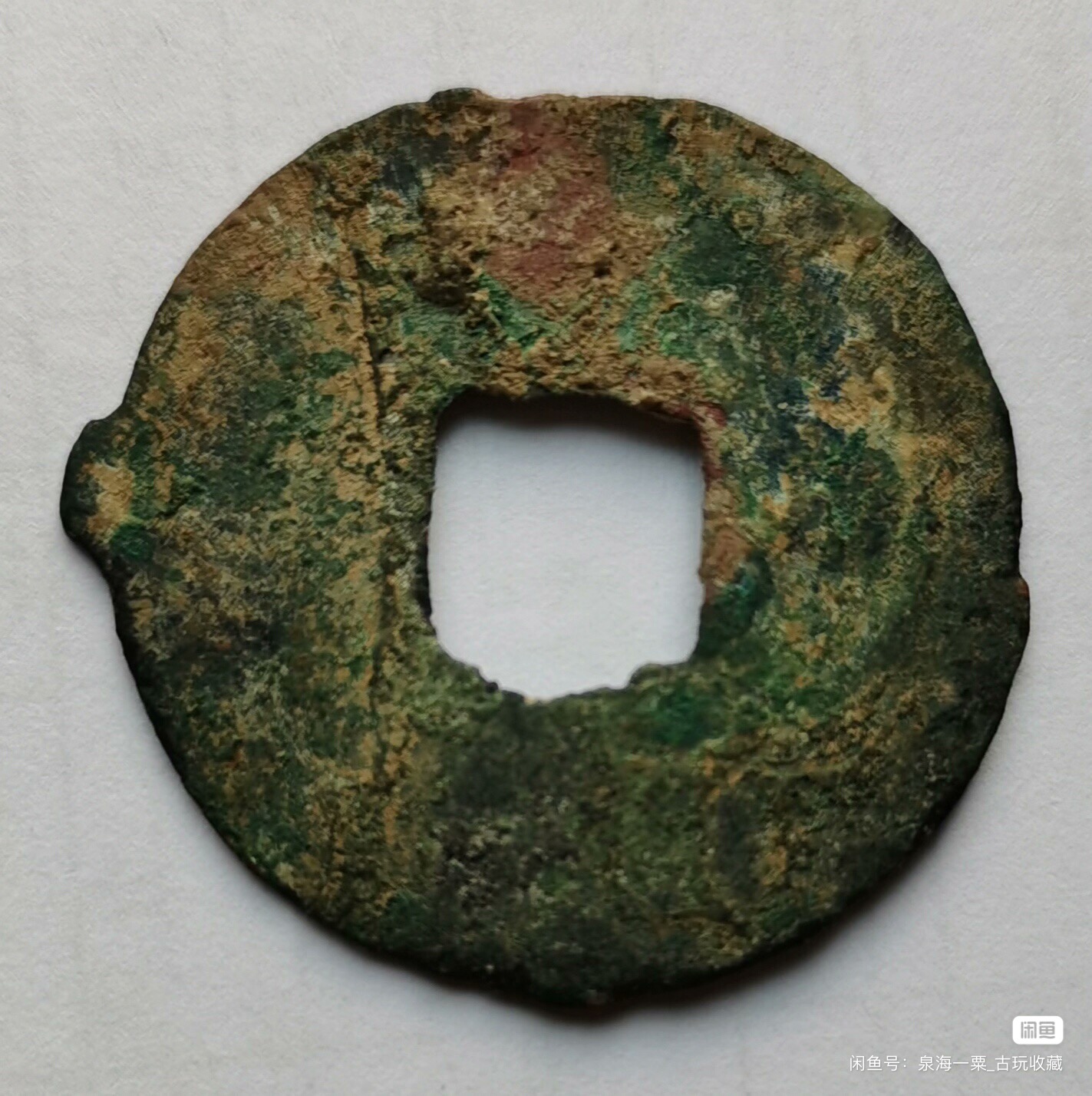 半两一枚,重4.08克,30.5mm大,无裂。包真包老,标准范式,锈色自然。