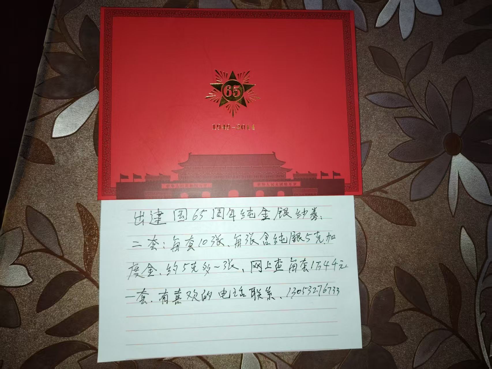 出建国65周年纯金银钞