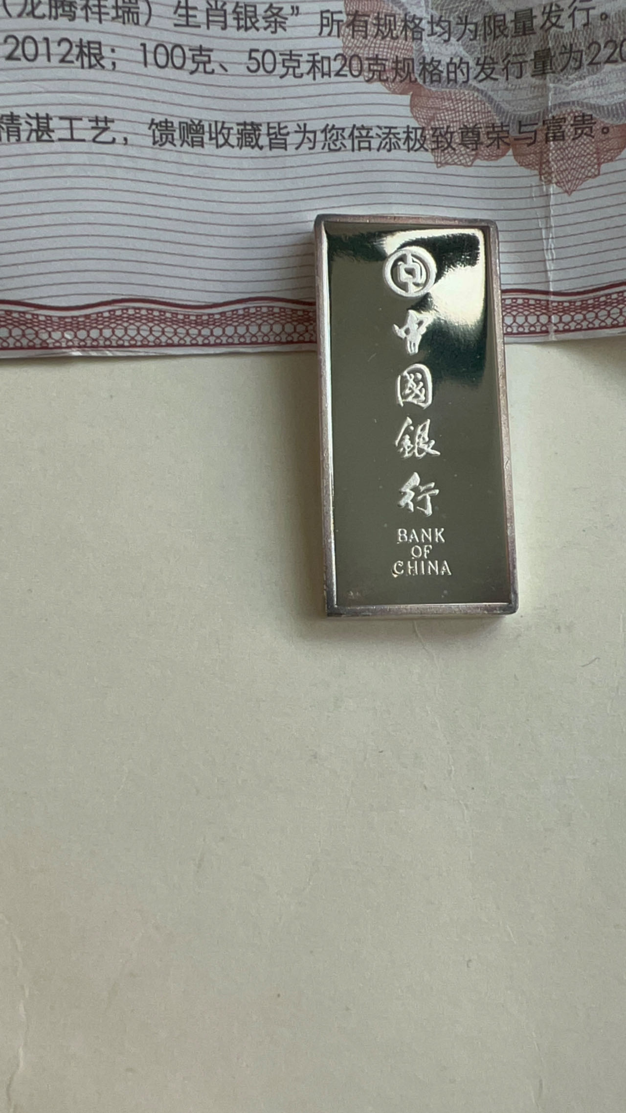 → 出中国银行20克生肖龙(2012)银条一根